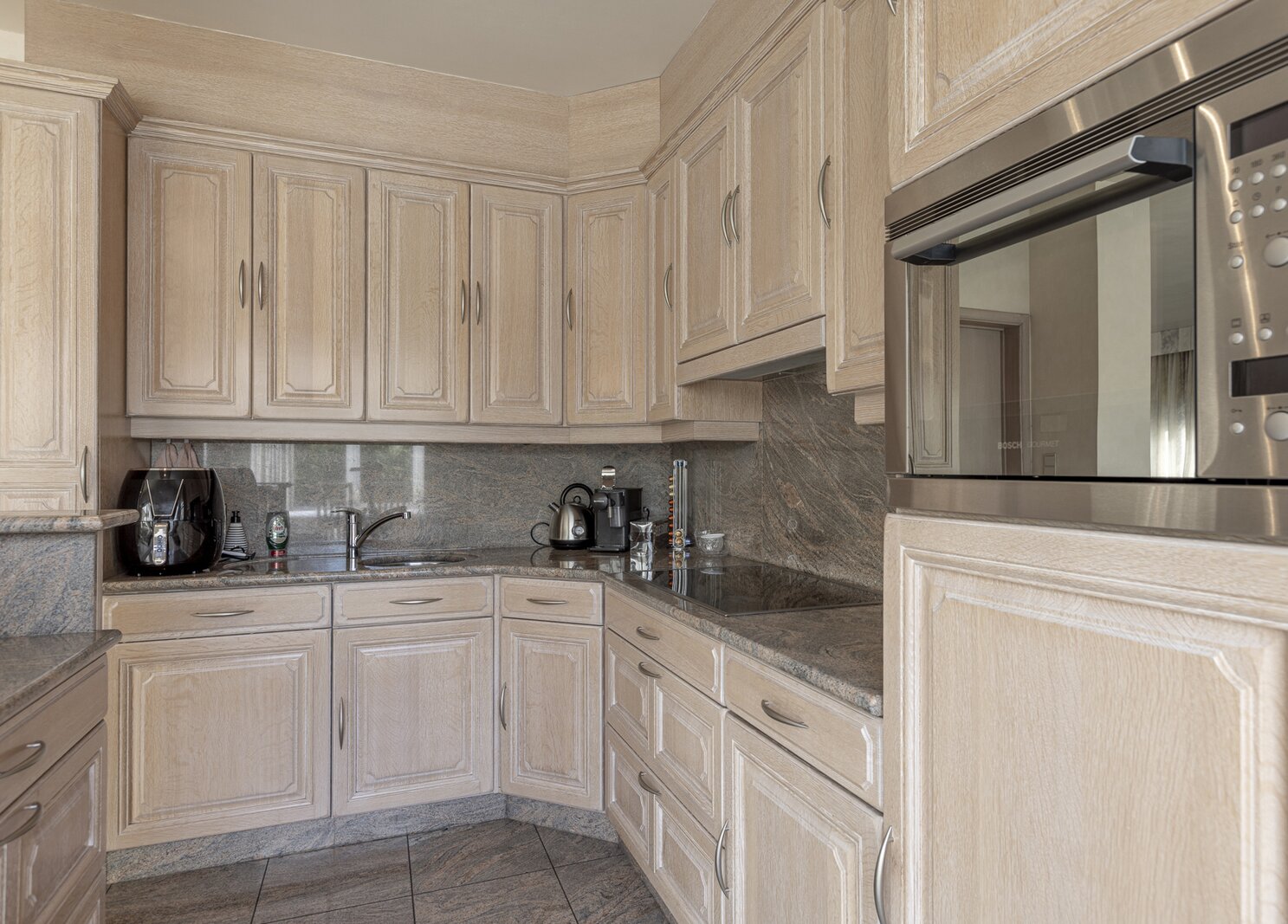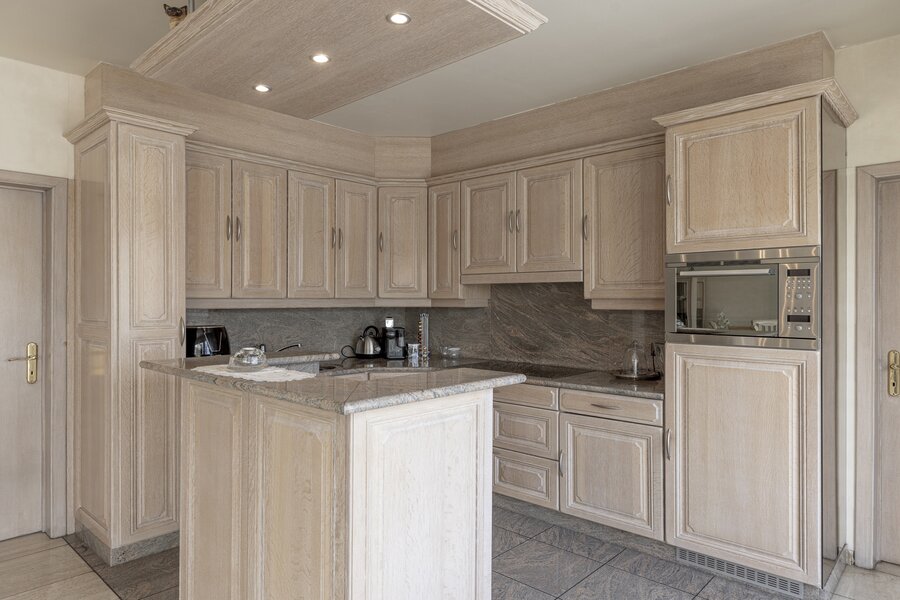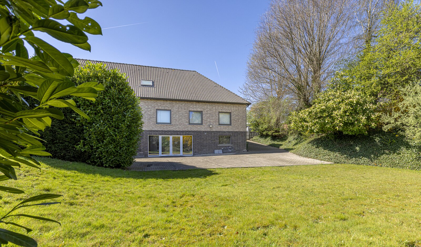 De woning beschikt over een statige inkomhal met gastentoilet, een lichtrijke leefruimte met open keuken, een aangename veranda en directe toegang tot het terras en de tuin – een oase van rust.
