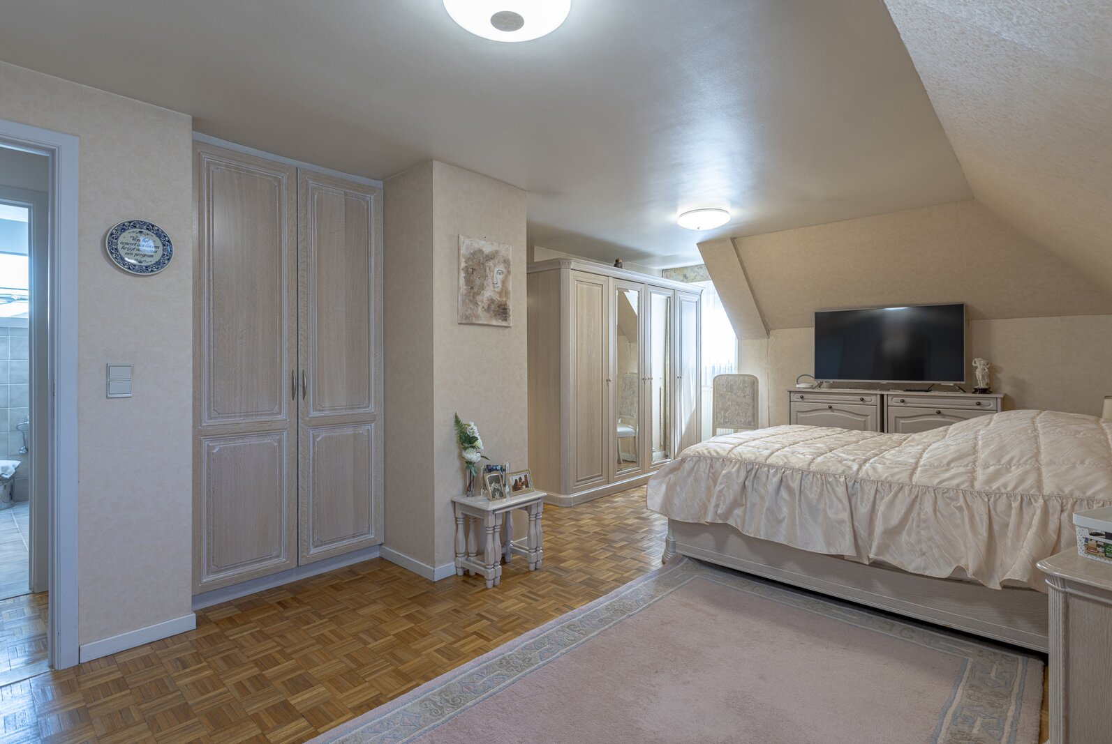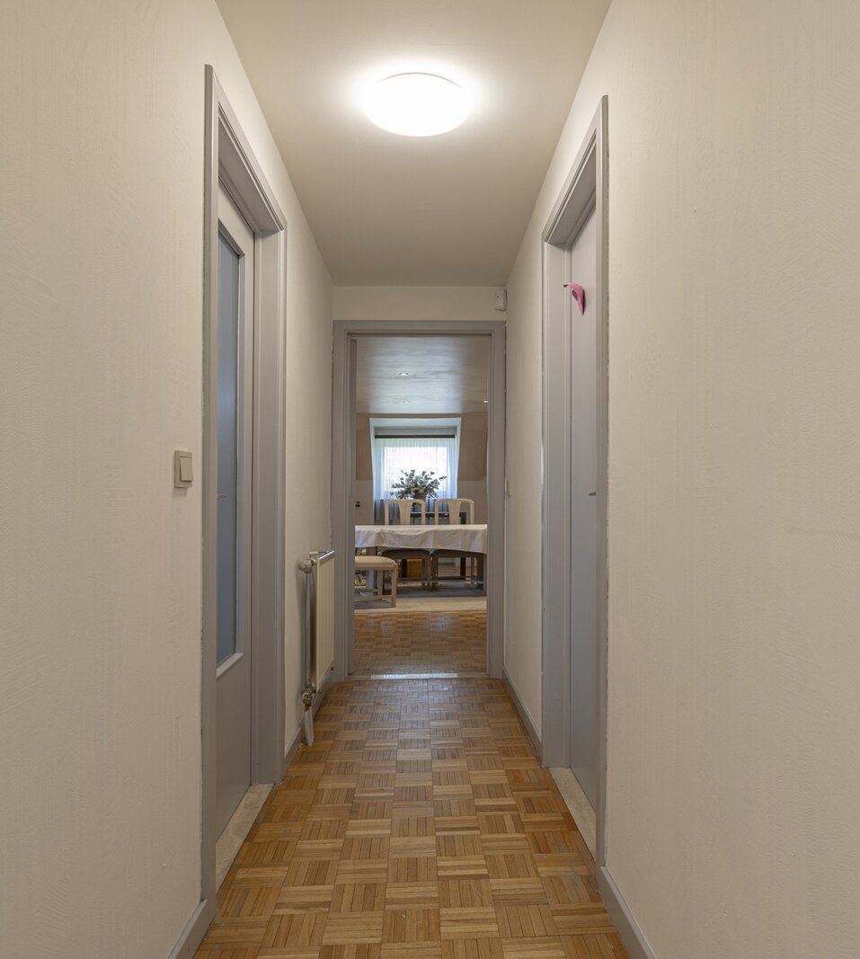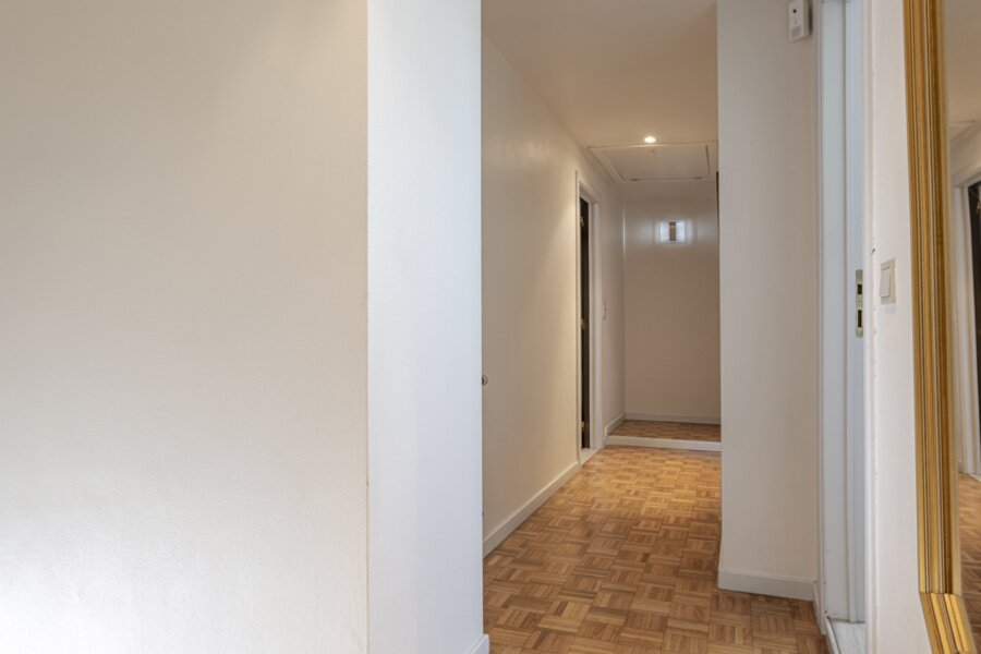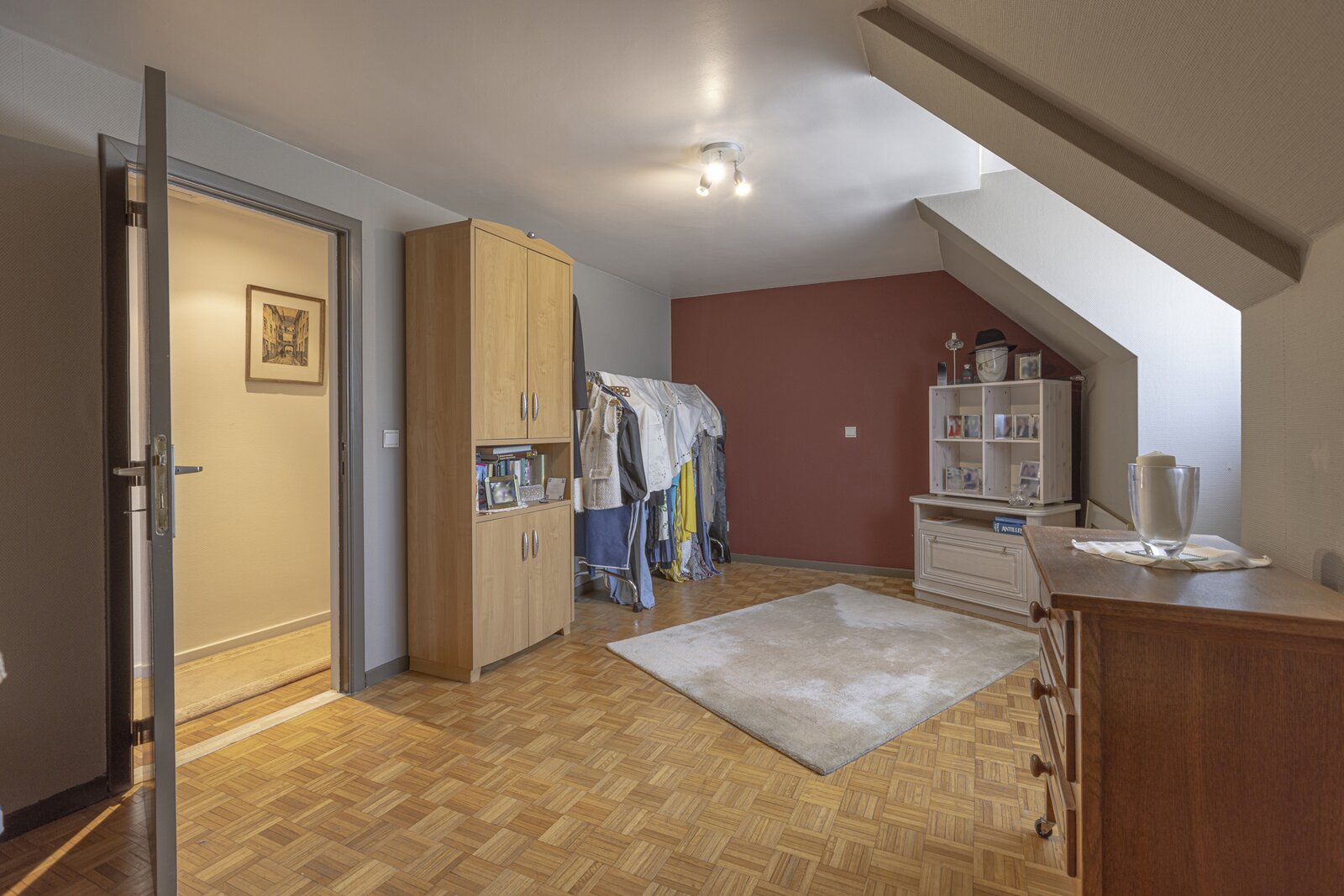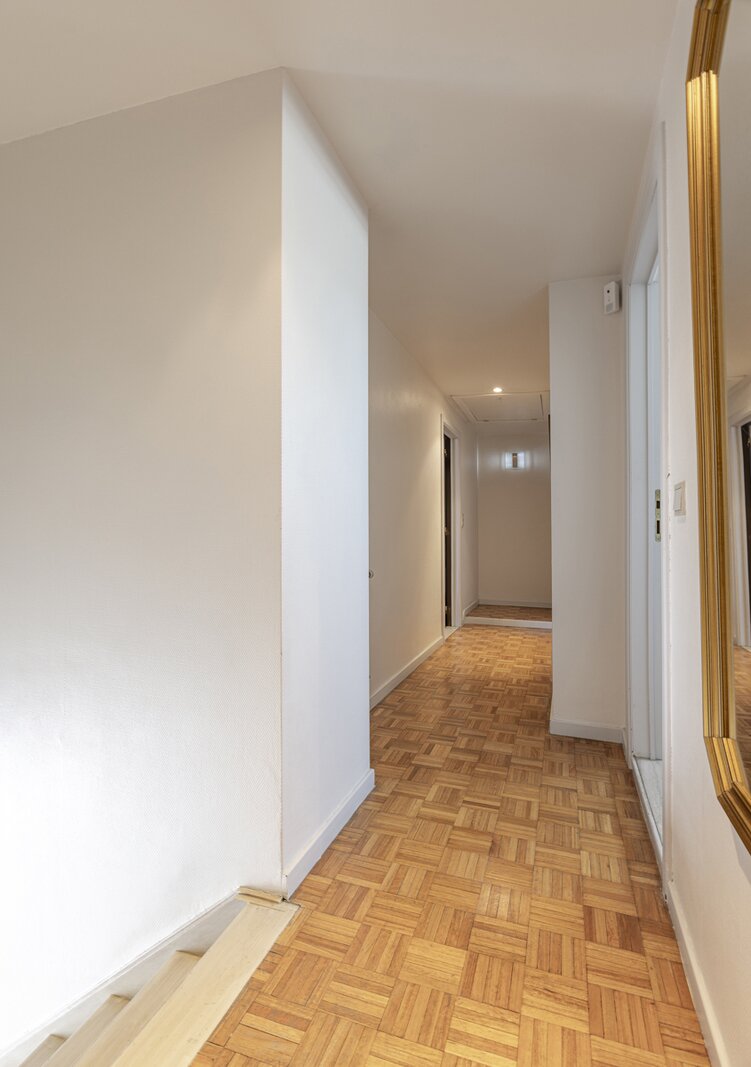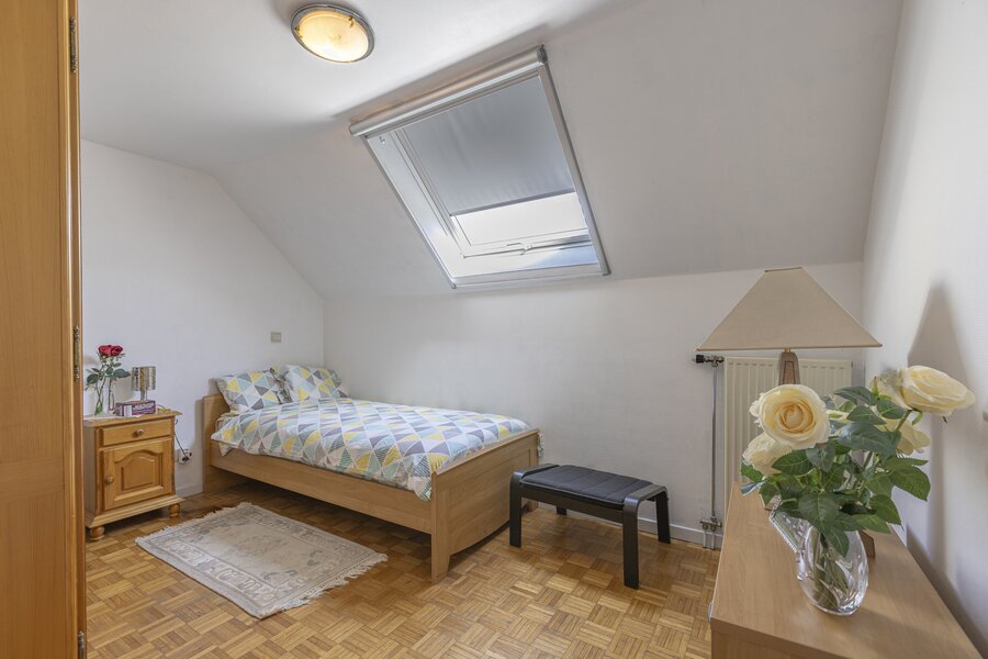 Op de eerste verdieping vinden we de master bedroom met aangrenzende dressing en badkamer met ligbad, alsook twee bijkomende slaapkamers. De zolder is bereikbaar via een uittrekbare trap. De woning biedt tal van mogelijkheden tot herindeling naar eigen wens. Zo kan de eerste verdieping eenvoudig worden uitgebreid met extra slaapkamers, een hobbyruimte of een tweede badkamer.