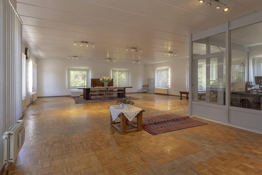 Op de bovenverdieping bevinden zich een ruime vergaderzaal en twee aparte bureauruimtes – perfect voor een efficiënte werkindeling of teamwerking.