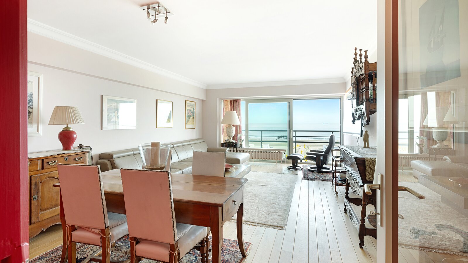 Appartement met frontaal zeezicht in hartje Zoute – op te frissen parel met potentieel
