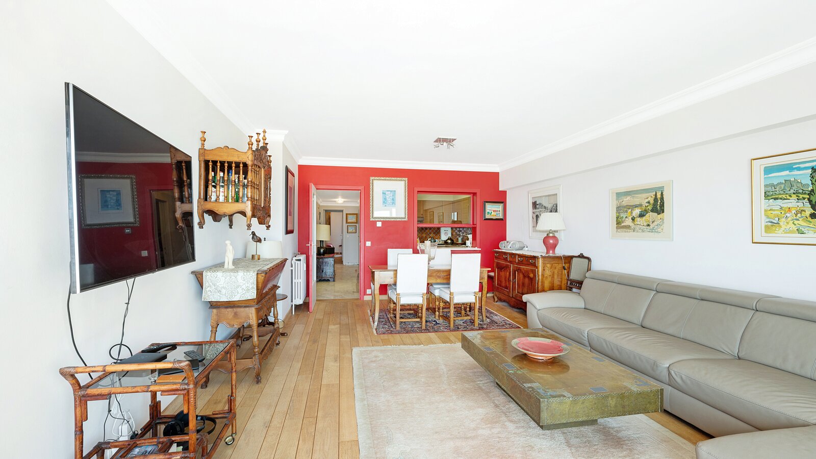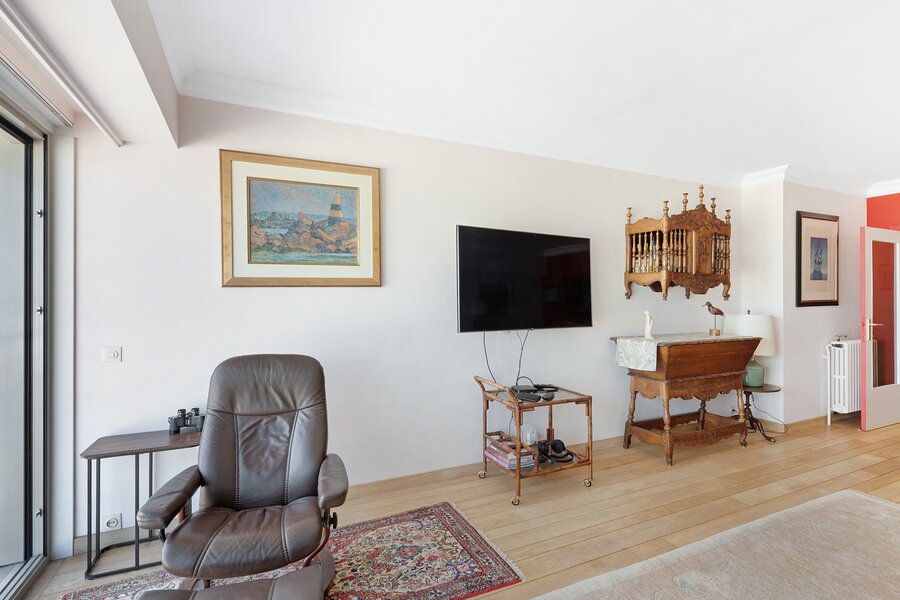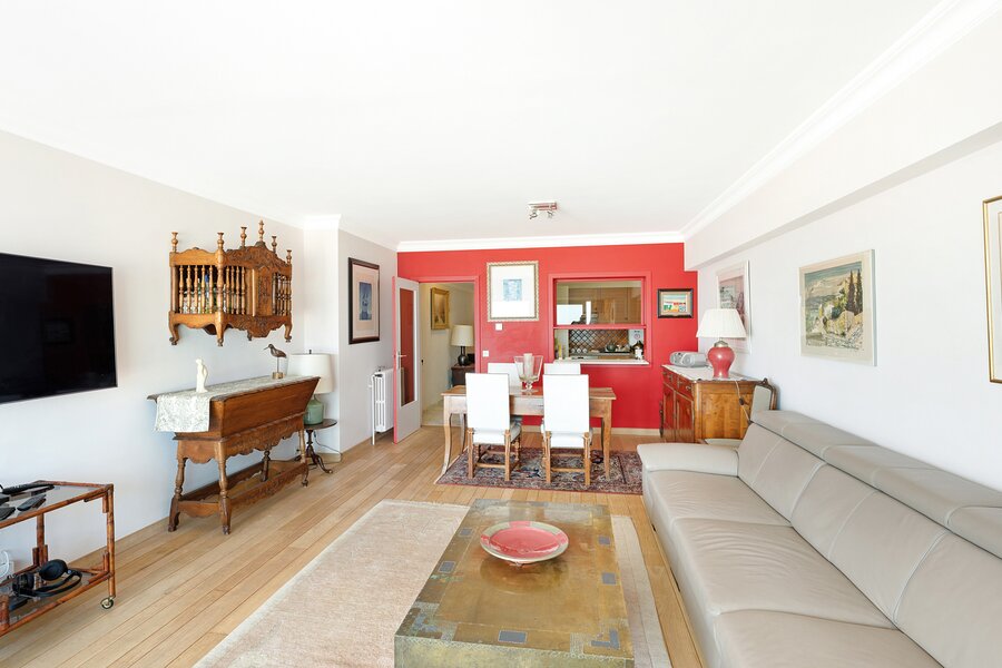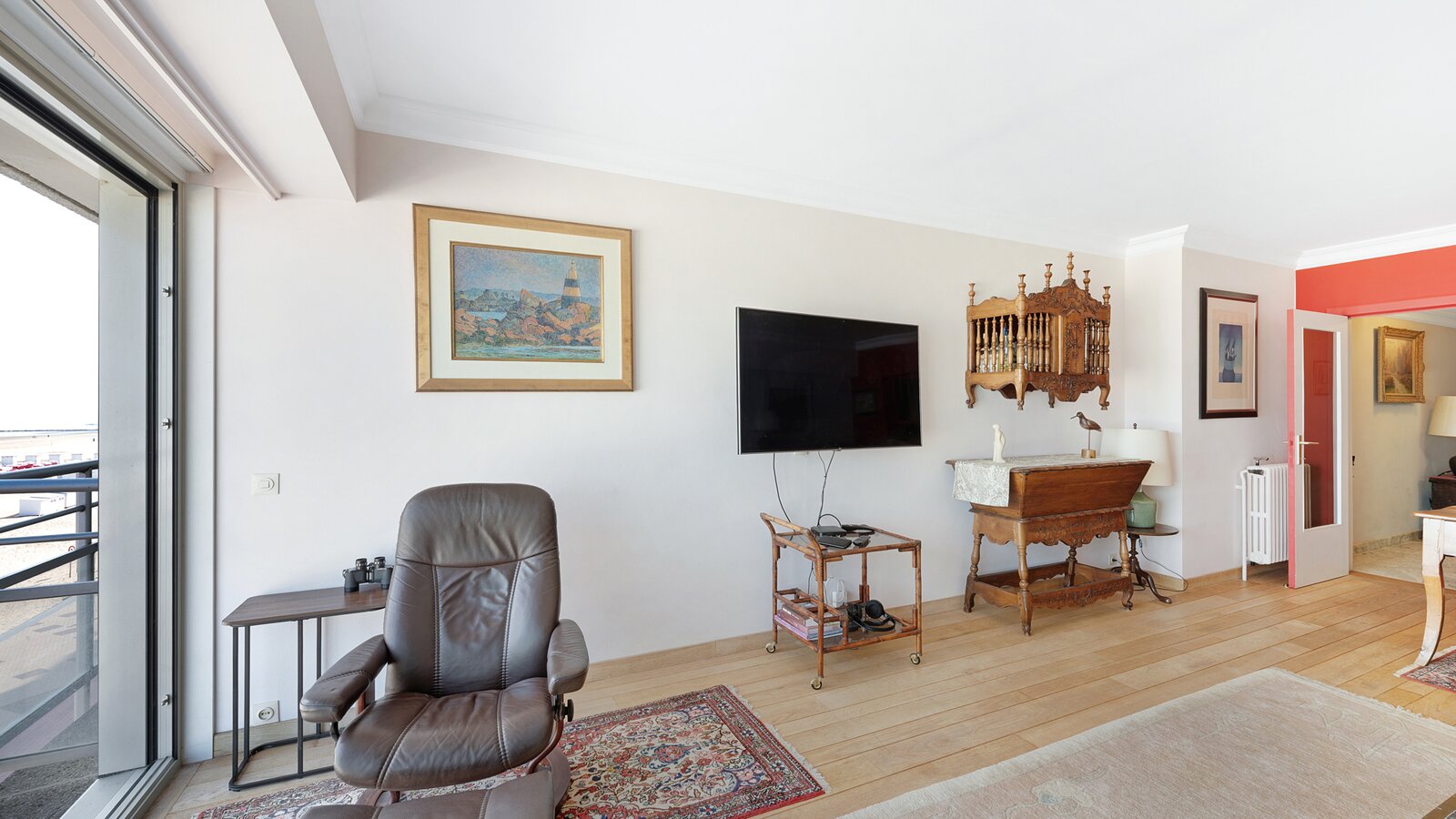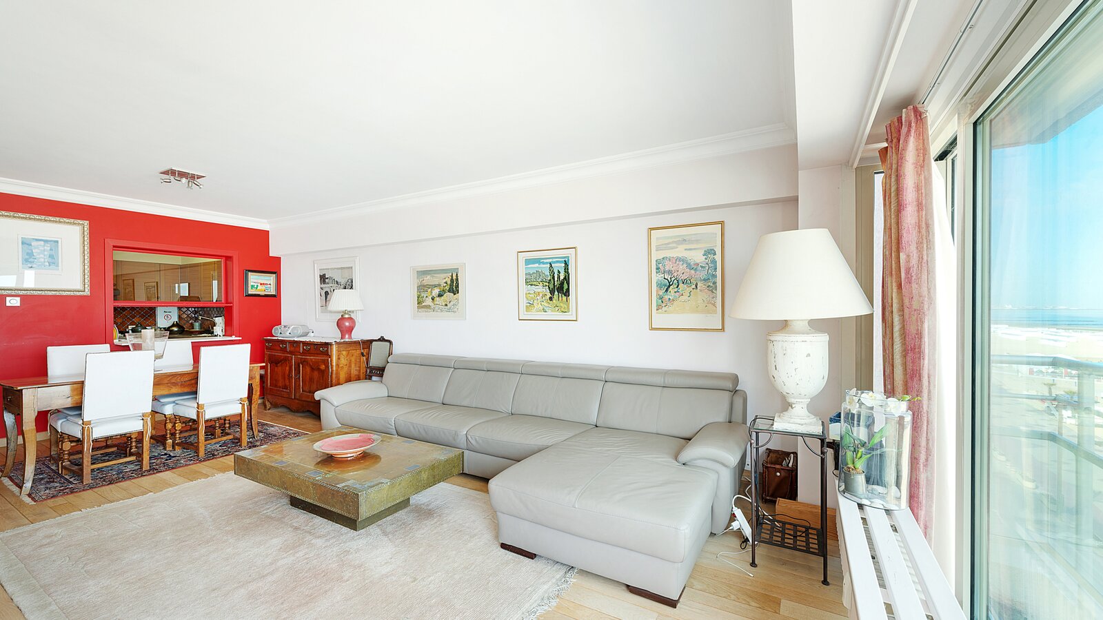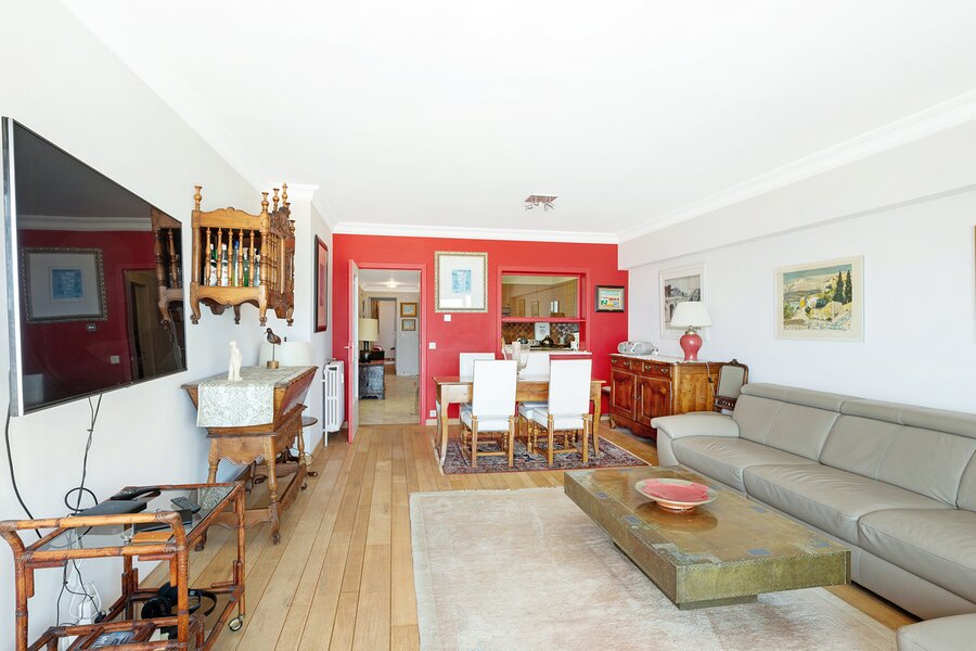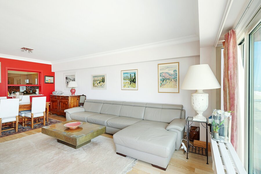 De lichtrijke leefruimte biedt een schitterend frontaal zeezicht dat elke dag opnieuw weet te bekoren. Met enkele opfrissingswerken kan dit appartement worden omgevormd tot een prachtig verblijf aan zee, volledig naar uw smaak.
