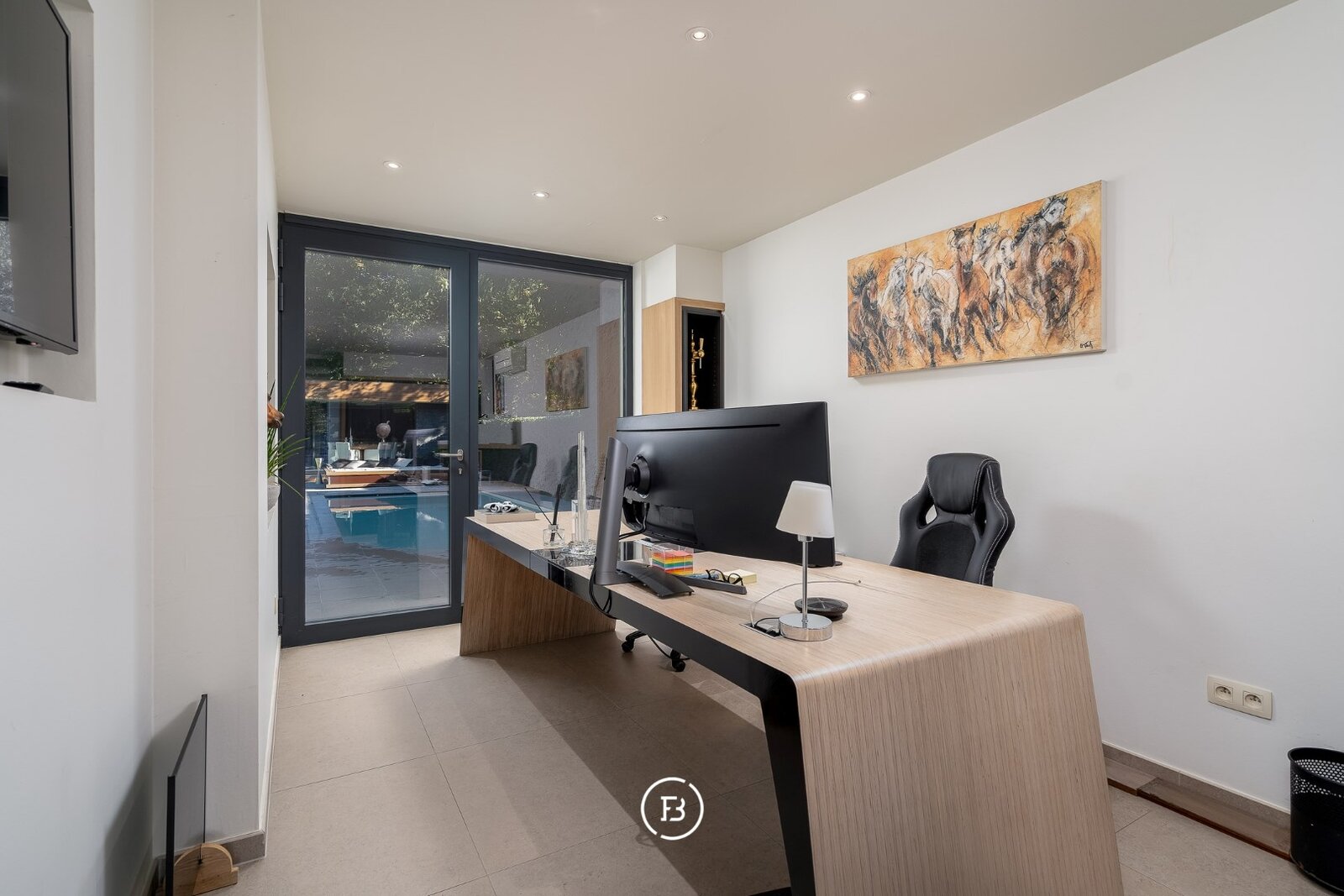 Verwarming gebeurt met een geavanceerd warmtepompsysteem, en er zijn zonnepanelen en een alarmsysteem voor energie-efficiëntie en veiligheid. Met dubbel glas, een automatische poort, LED-verlichting en een beregeningssysteem voor de tuin biedt deze villa een ultieme combinatie van luxe, comfort en privacy.