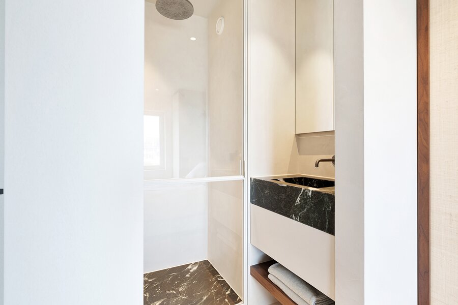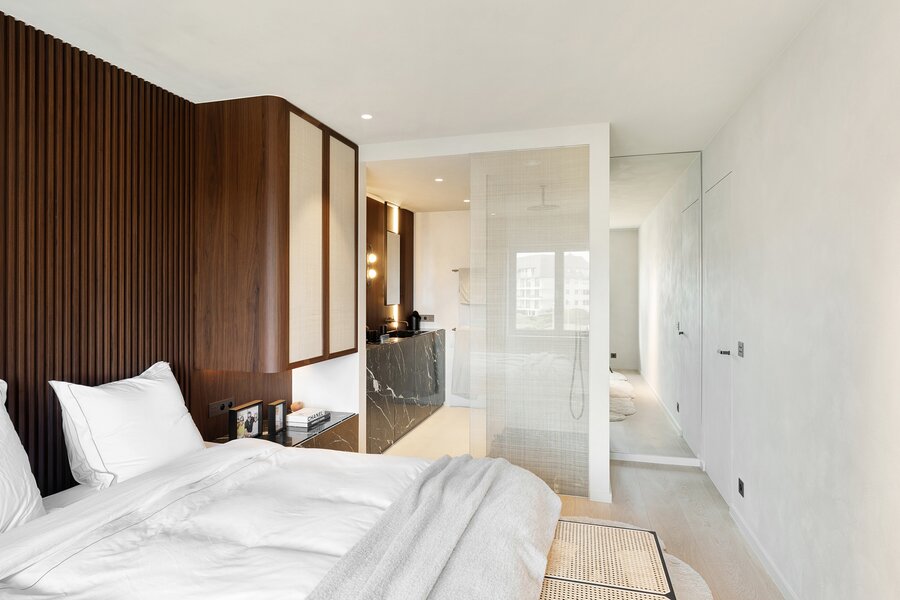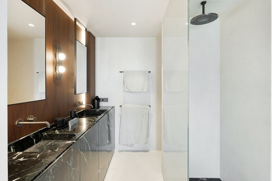 De master bedroom beschikt over een luxueuze en suite douchekamer. Ook de tweede en derde slaapkamer genieten elk van een eigen douchekamer, allen met zeezicht.
