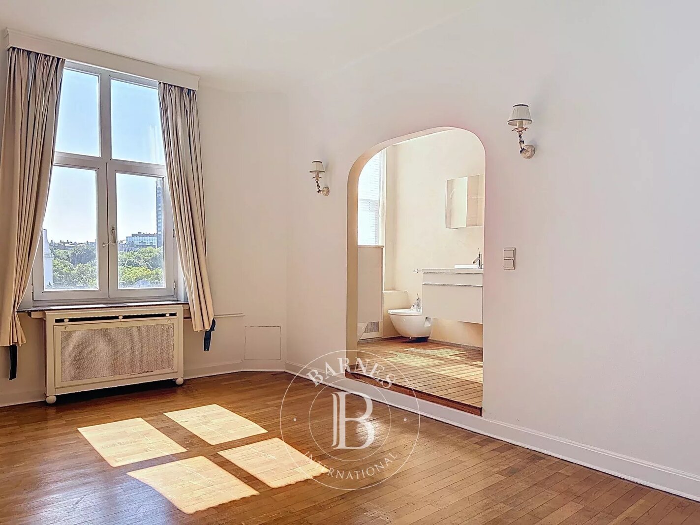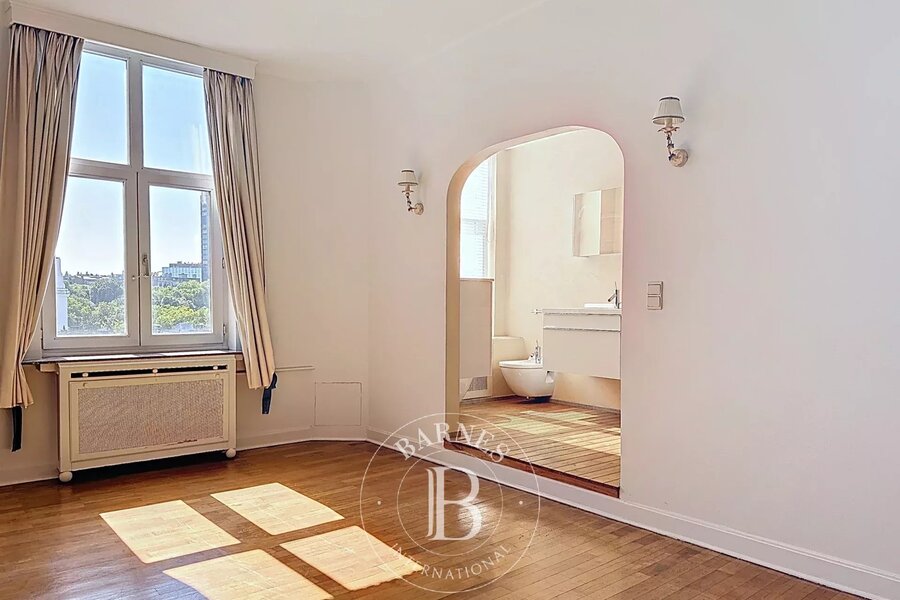 In het hart van het zeer gewilde Val de la Cambre, ontdek dit prachtige, karakteristieke appartement van ongeveer 183 m² op één niveau. Entree, grote ontvangstruimten met parketvloer, buitengewoon uitzicht en veel licht. Keuken. 3 slaapkamers en 2 badkamers met douche.