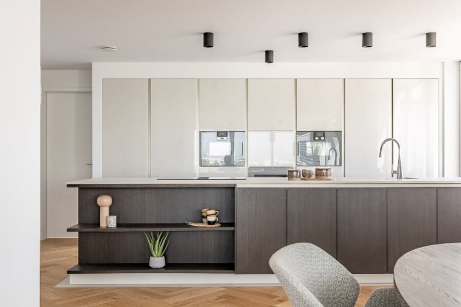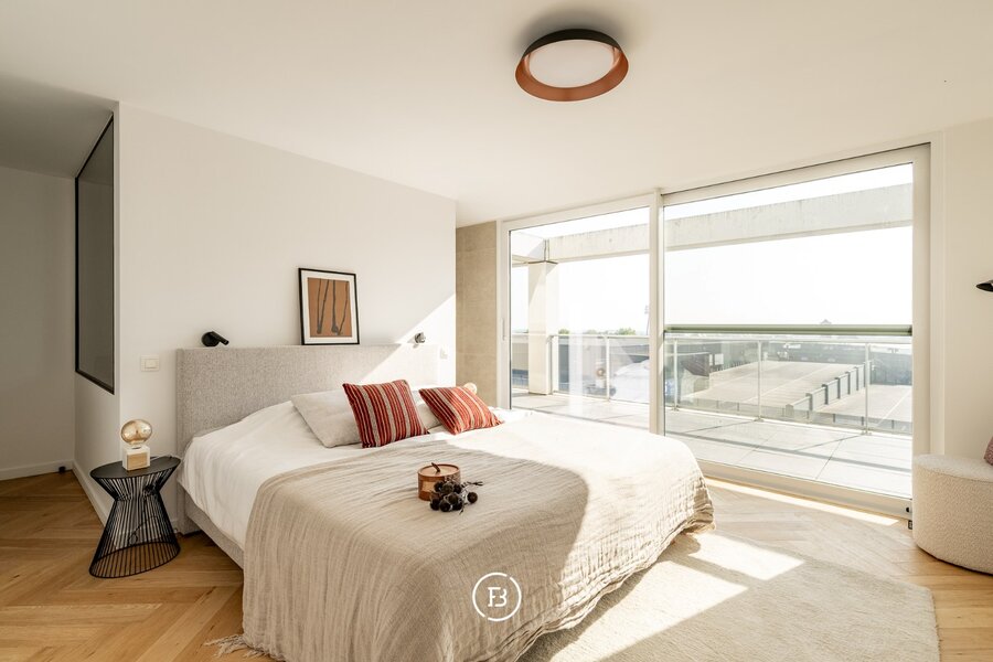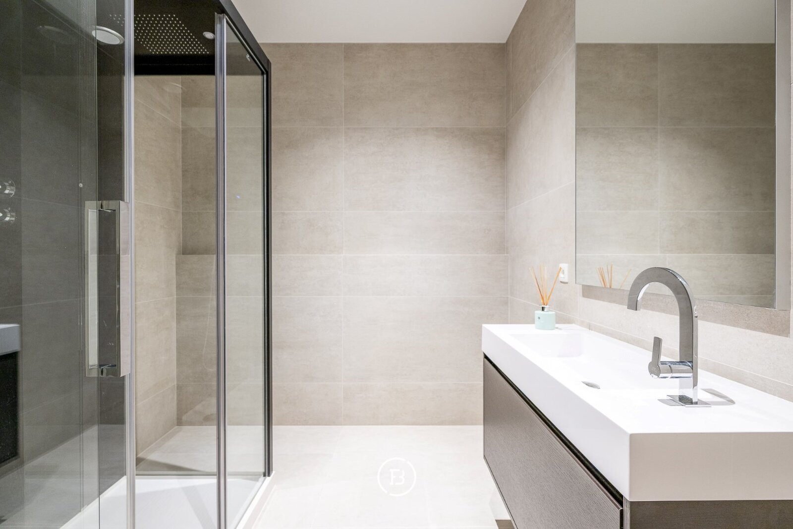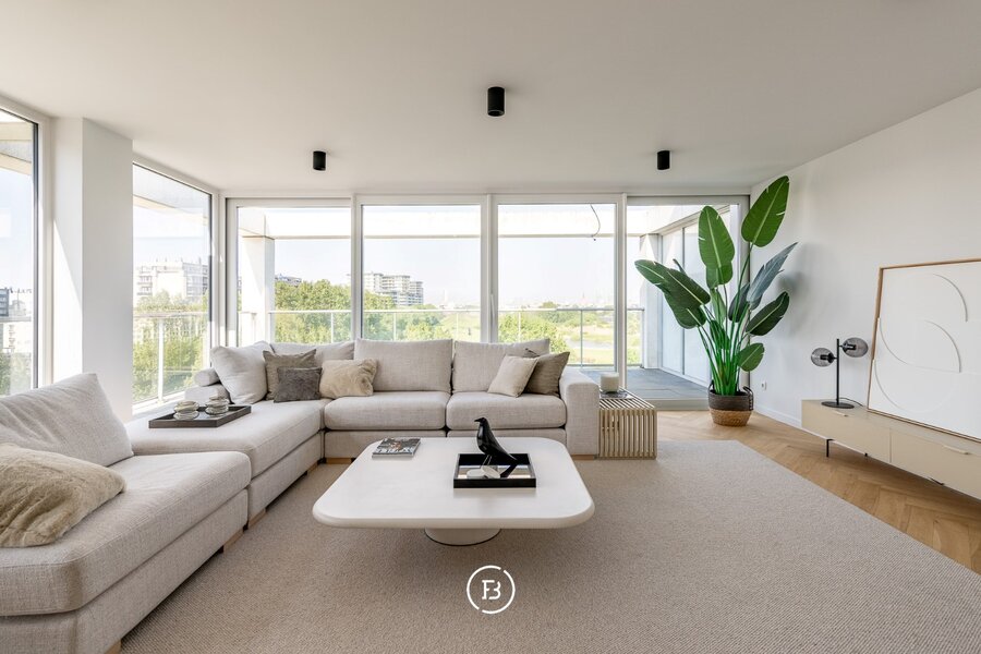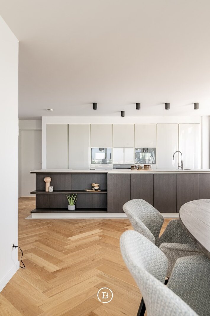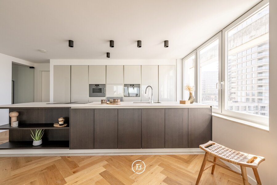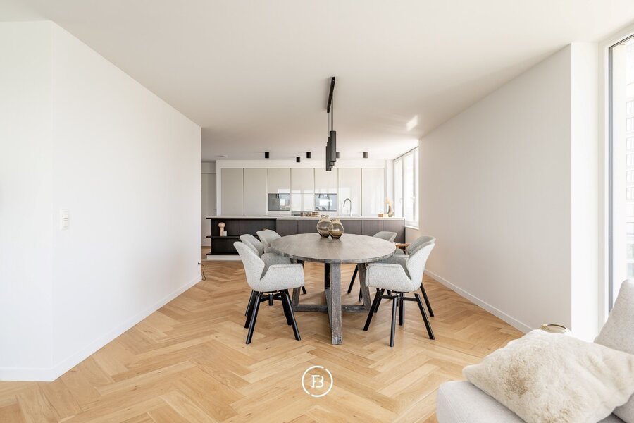 We betreden het appartement via de inkomhal met gastentoilet die uitgeeft naar de ruime en lichtrijke leefruimte bestaande uit de living, eetplaats en schitterende open keuken. Daarnaast bestaat het appartement uit 3 slaapkamers, 2 badkamer en een ruime berging.