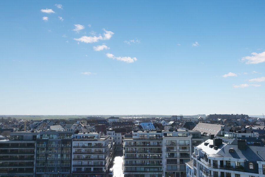 We betreden het appartement via de inkomhall op de 9de verdieping voorzien van een ruime inkomhal met vestiaireruimte en gastentoilet. Doorlopend begeven we ons tot de zéér ruime, lichtrijke leefruimte met open, volledig geïnstalleerde keuken met aansluitend een berging, eetplaats, woonkamer en bureelruimte. Toegang tot het zuidgeoriënteerd terras van maar liefst 25m² met uniek zicht over Blankenberge, jachthaven en de Uitkerksepolder! Via de trap in de leefruimte krijgen we toegang tot de 8ste verdieping. Deze verdieping beschikt over 3 zeer ruime kamers met telkens een ruime badkamer. De Mastersuite beschikt ook over een ruime dressing en aansluitend aan de suite ook een prachtig zuidgeoriënteerd terras van 17 m².