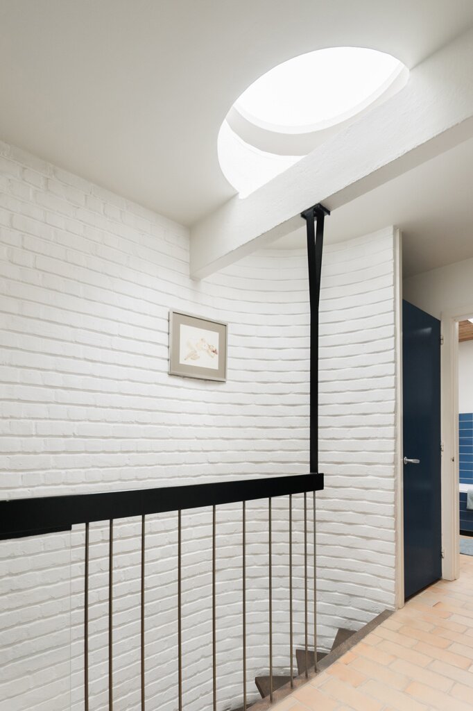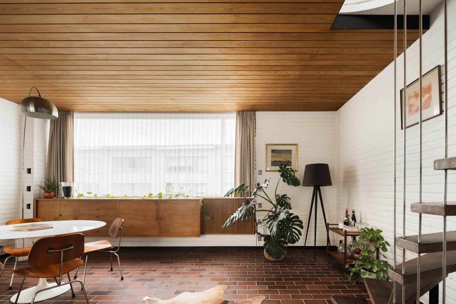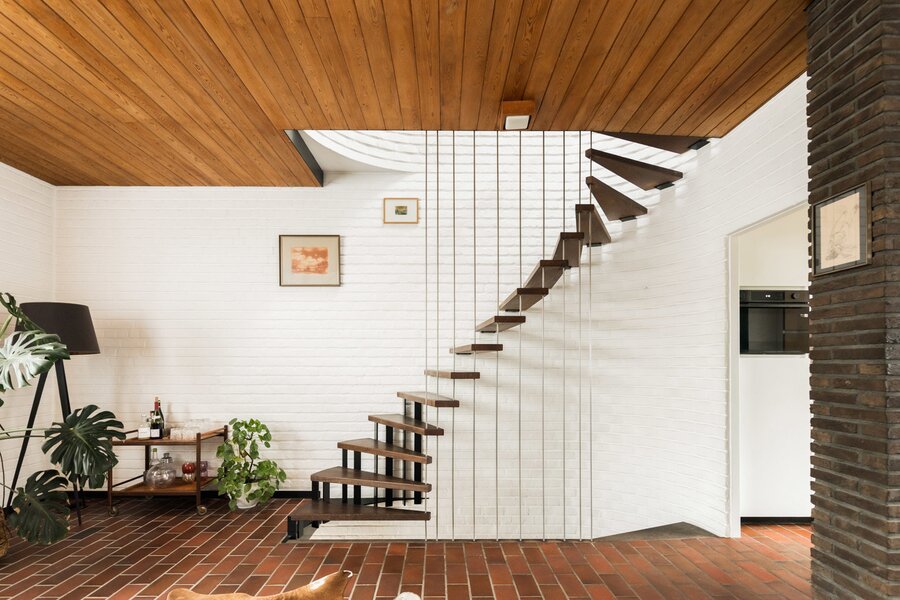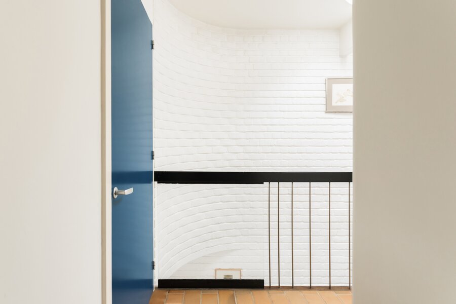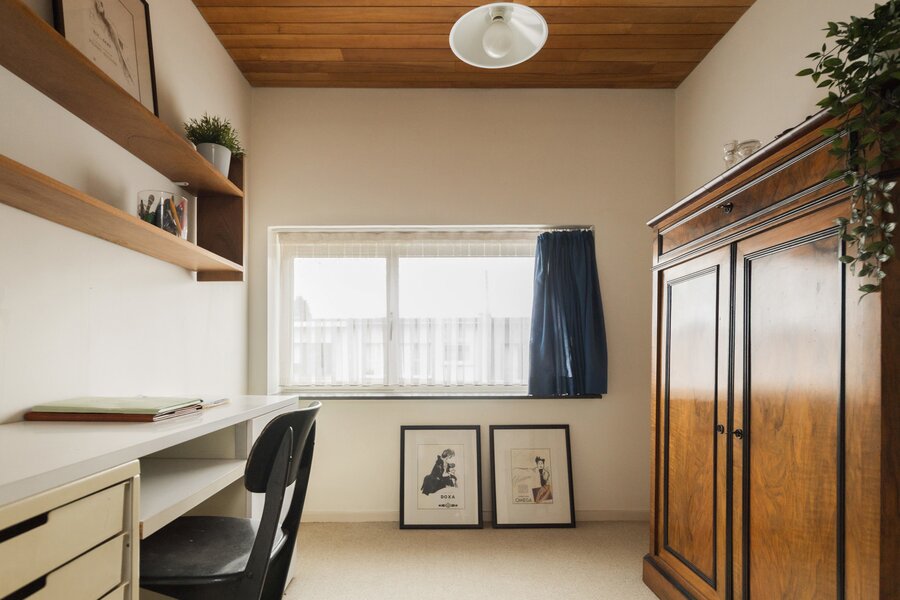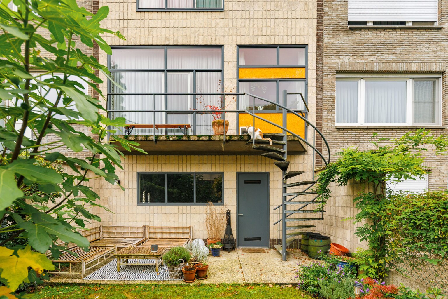 Sommige huizen hebben dat ietsje meer: een ziel, een verhaal, een unieke vibe. Deze schitterende vintage bel-étage is daar het perfecte voorbeeld van. Degelijk gebouwd met oog voor detail, liefde voor materiaal en een artistieke toets die je meteen voelt zodra je binnenkomt. De gevel alleen al trekt de aandacht: een kleurrijk spel van oranje mozaïektegeltjes, witte steen en donkergrijze stalen ramen. Binnen gaat het feest verder met een open wengétrap met metalen leuning, een ronde trappenhal met lichtkoker en zelfs een ingebouwde plantenbak aan het raam. De retro vibe zit in elk detail: blauwe en rode deuren, kasten in groen en rood, blauwe badkamertegels.