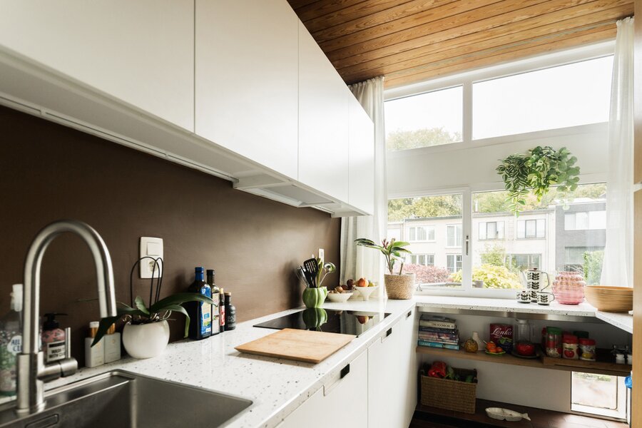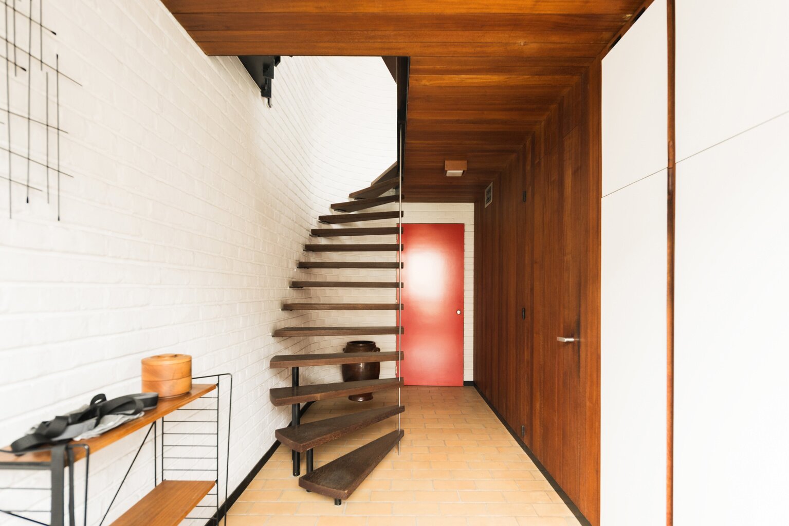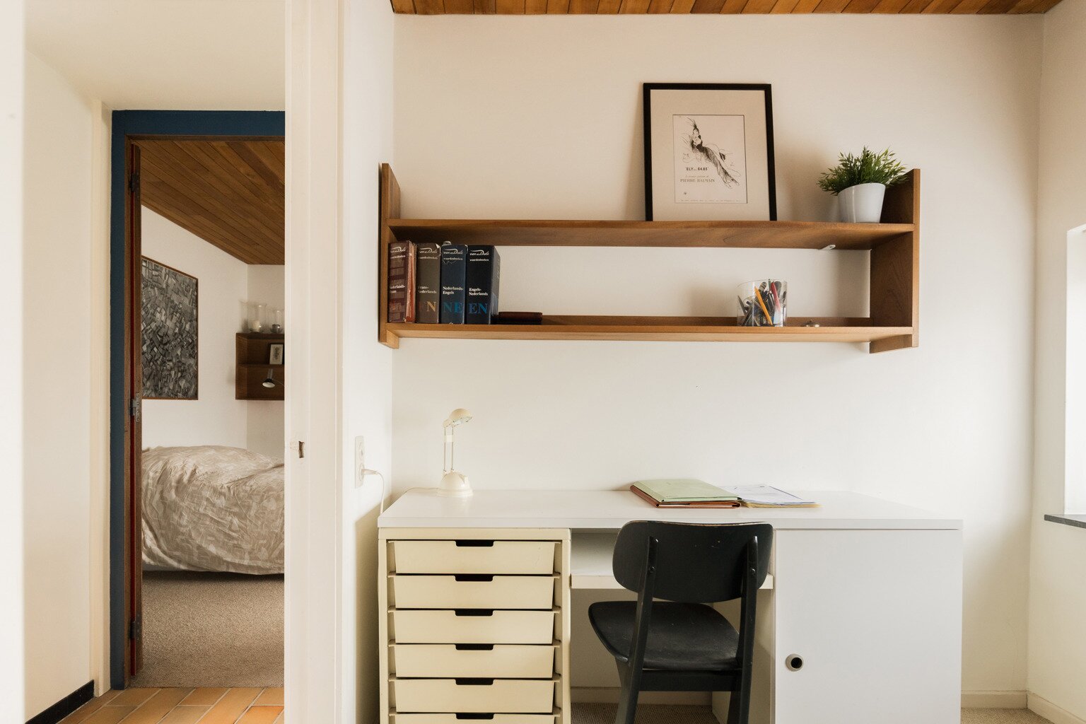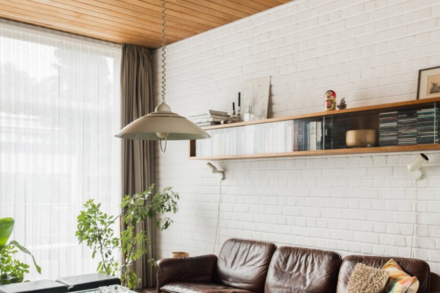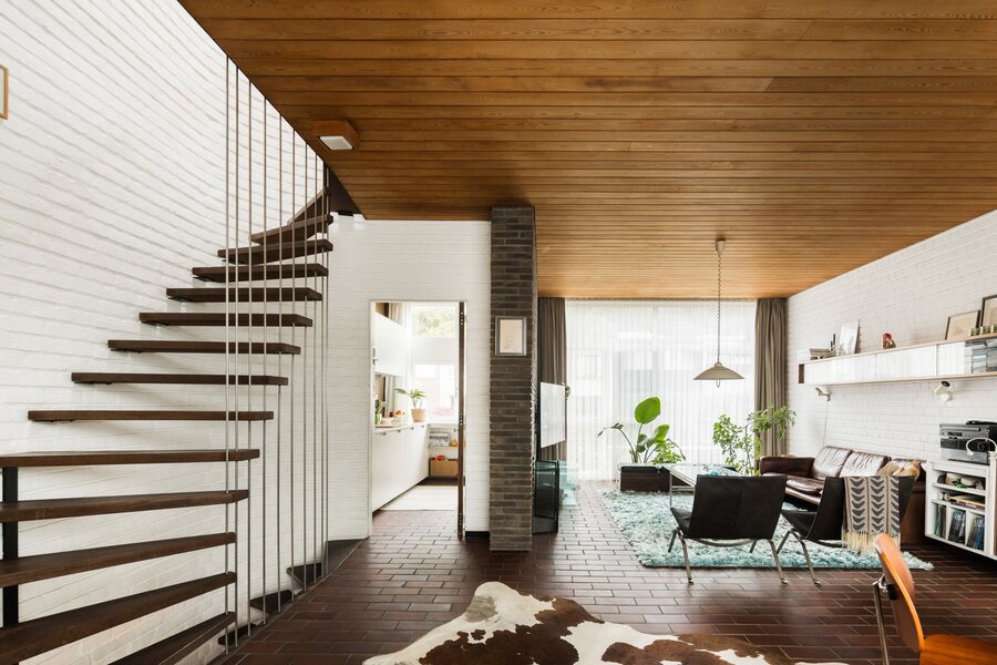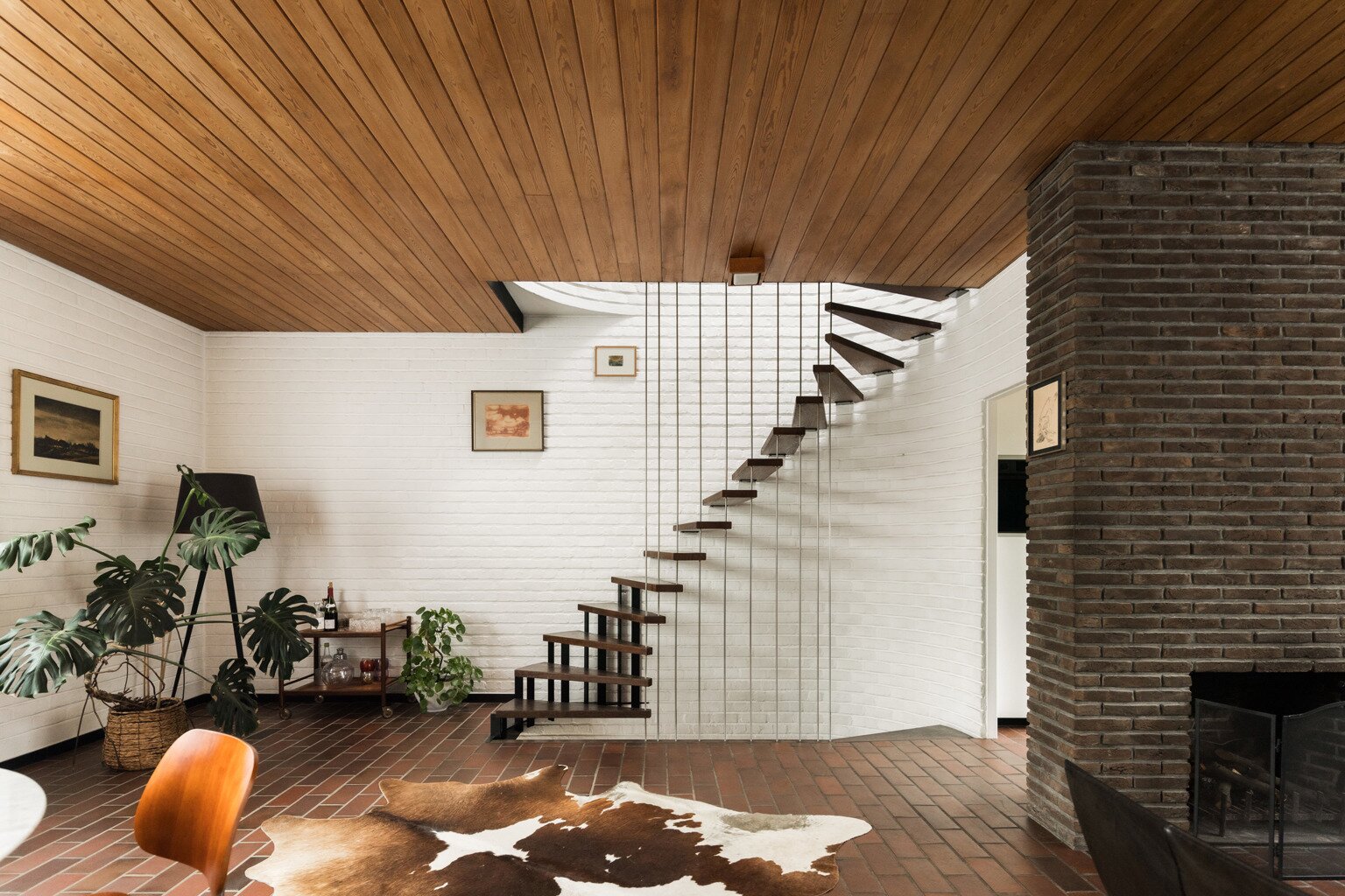 Sommige huizen hebben dat ietsje meer: een ziel, een verhaal, een unieke vibe. Deze schitterende vintage bel-étage is daar het perfecte voorbeeld van. Degelijk gebouwd met oog voor detail, liefde voor materiaal en een artistieke toets die je meteen voelt zodra je binnenkomt. De gevel alleen al trekt de aandacht: een kleurrijk spel van oranje mozaïektegeltjes, witte steen en donkergrijze stalen ramen. Binnen gaat het feest verder met een open wengétrap met metalen leuning, een ronde trappenhal met lichtkoker en zelfs een ingebouwde plantenbak aan het raam. De retro vibe zit in elk detail: blauwe en rode deuren, kasten in groen en rood, blauwe badkamertegels.