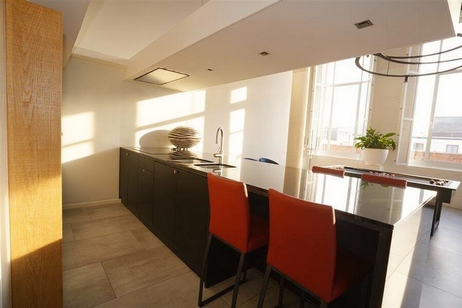 De leefruimte voelt als een scène uit een stijlvolle film. Licht, lucht en luxe vloeien in elkaar over. Moderne open keuken die uitnodigt om te blijven hangen... koken, praten en proeven in één open, uitnodigende ruimte en het apero- terras is binnen handbereik. Er zijn drie slaapkamers (waarvan 1 op het gelijkvloers met de luxe high-end badkamer ) en een aparte bureauruimte geschikt voor hoofdzaken.