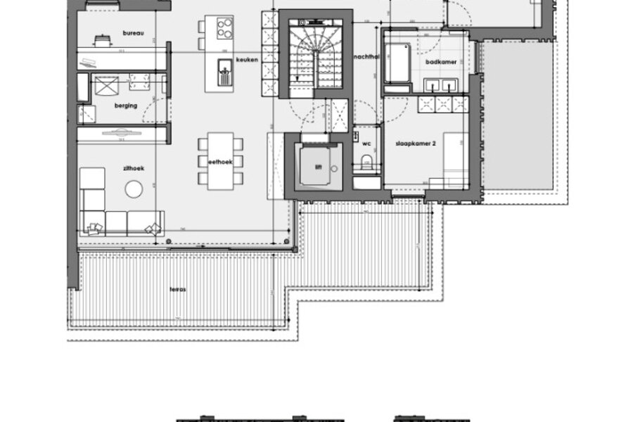 De open keuken en de aangrenzende, ruime leefruimte staan in het teken van licht en ruimte, en bieden directe toegang tot twee gezellige terrassen – ideaal voor ontspannen momenten of sfeervolle diners in de buitenlucht. Eén van de terrassen strekt zich uit tot aan een van de slaapkamers, wat zorgt voor een extra gevoel van openheid en verbondenheid met buiten.