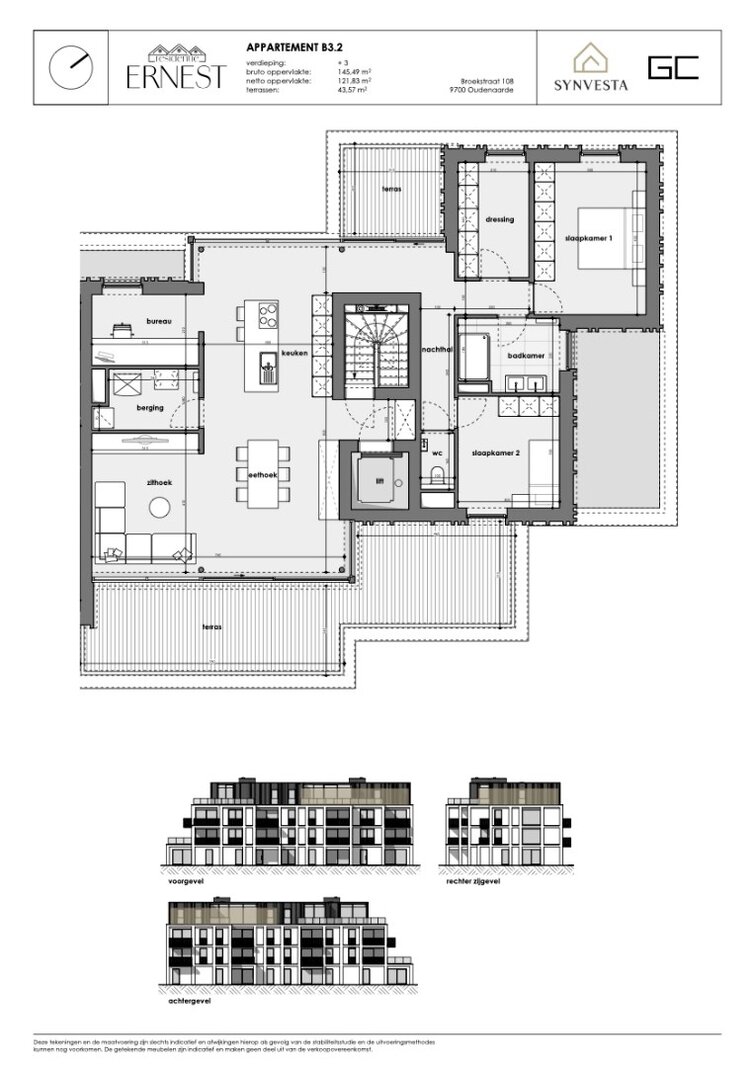 Dit lichtrijke penthouse bevindt zich op de derde verdieping van het moderne nieuwbouwproject Ernest en biedt een bewoonbare oppervlakte van maar liefst 145,49 m².