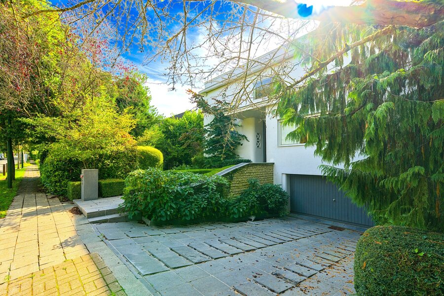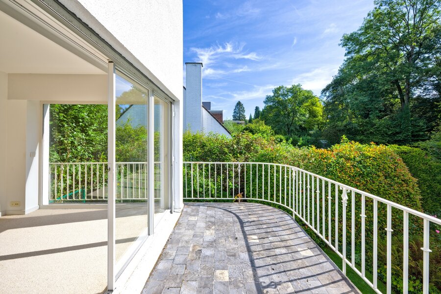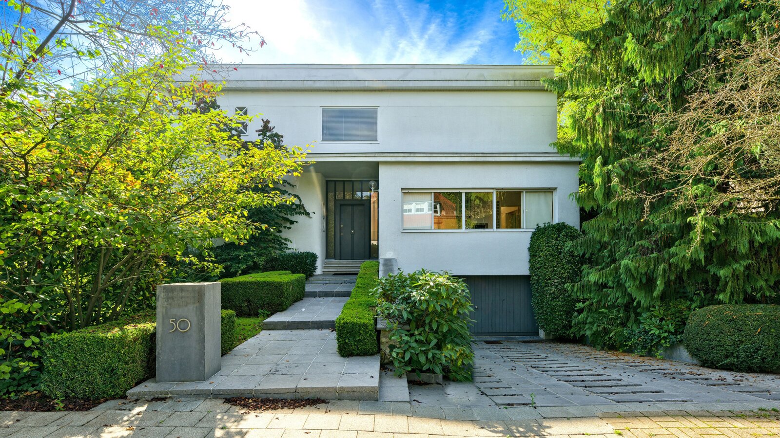 Magnifieke architectenwoning met een totale oppervlakte van ongeveer 460 m², uitstekend gelegen op een terrein van 16 are in de prachtige wijk rondom de Prins Van Oranjelaan: Indeling: zeer mooie inkomhal met vestiaire en gastentoilet, ruime leefruimte met grote raampartijen met prachtig zicht op de groene omgeving alsook toegang tot het terras, uitgeruste keuken, masterbedroom op het gelijkvloers (dressing en badkamer). Op de verdieping: 3 mooie slaapkamers, 2 douchekamers, zeer grote ruimte ingericht op heden als slaapkamer en badkamer. Garage voor 4 wagens, grote kelders, parking voor 2 wagens voor de woning. EPC G