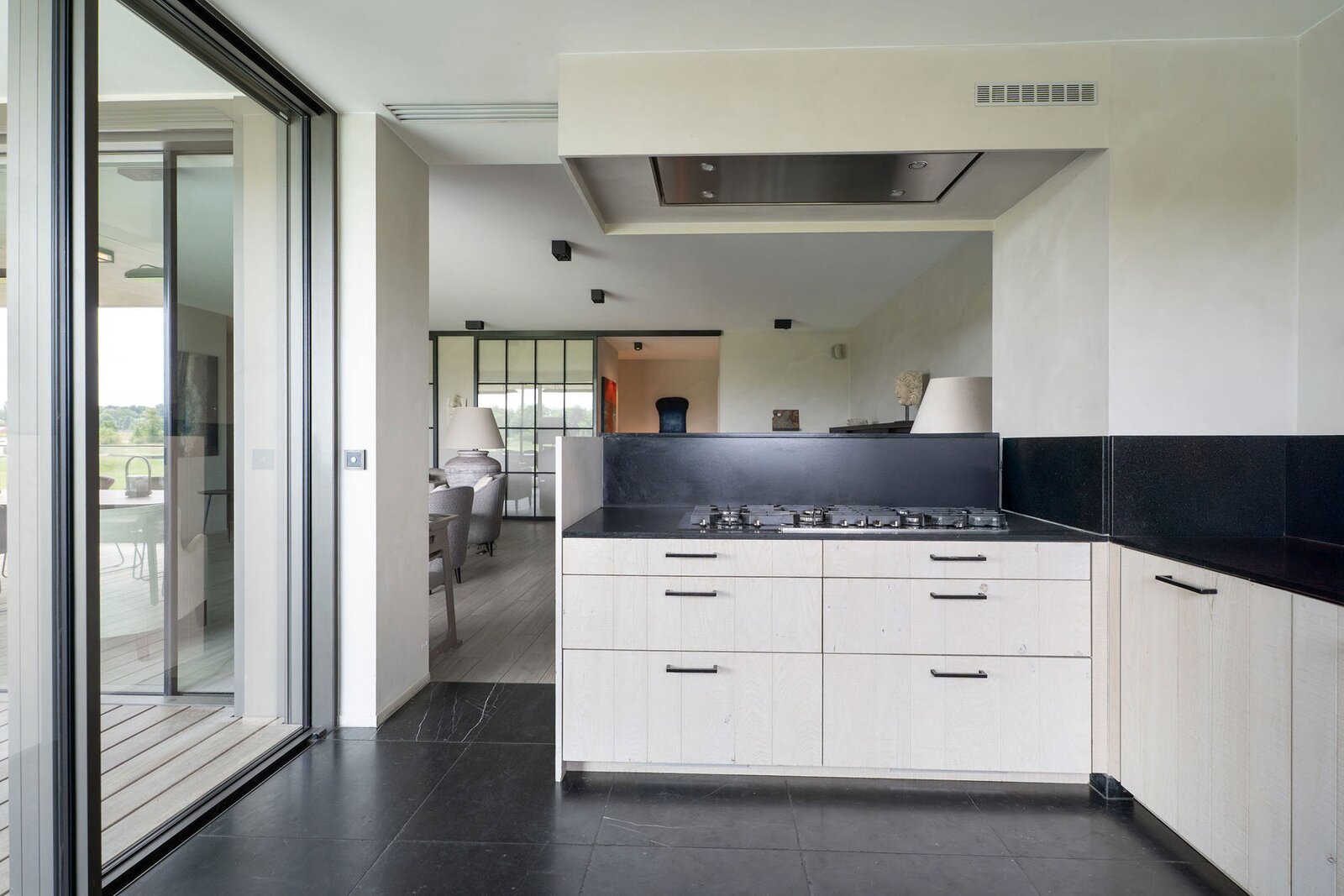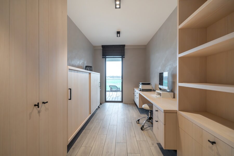 De ouderlijke suite wordt aangevuld met vier extra slaapkamers, elk met een eigen douchekamer, en twee afzonderlijke badkamers.