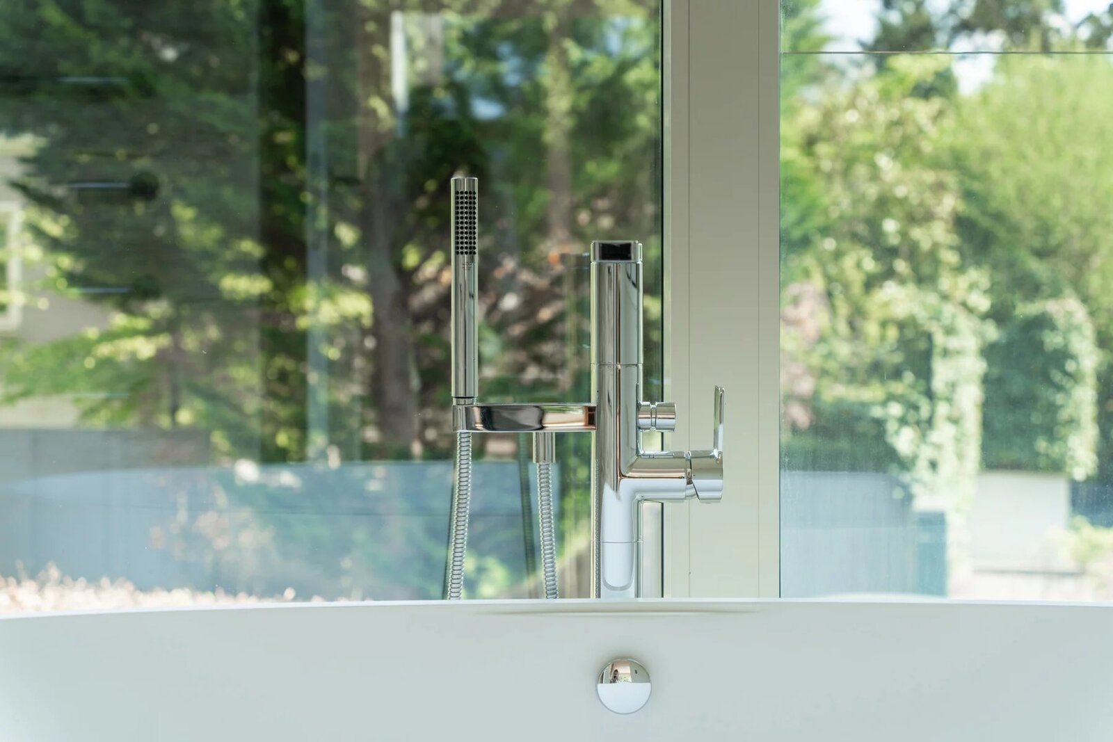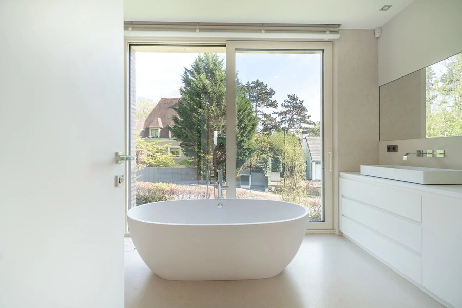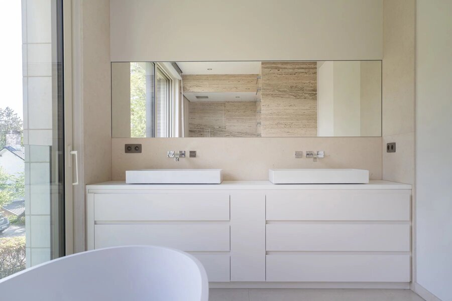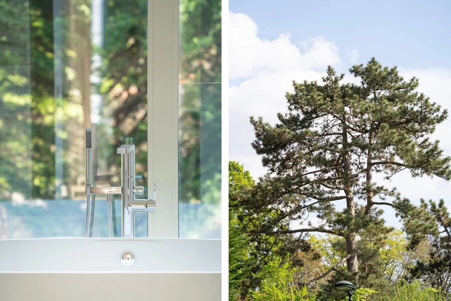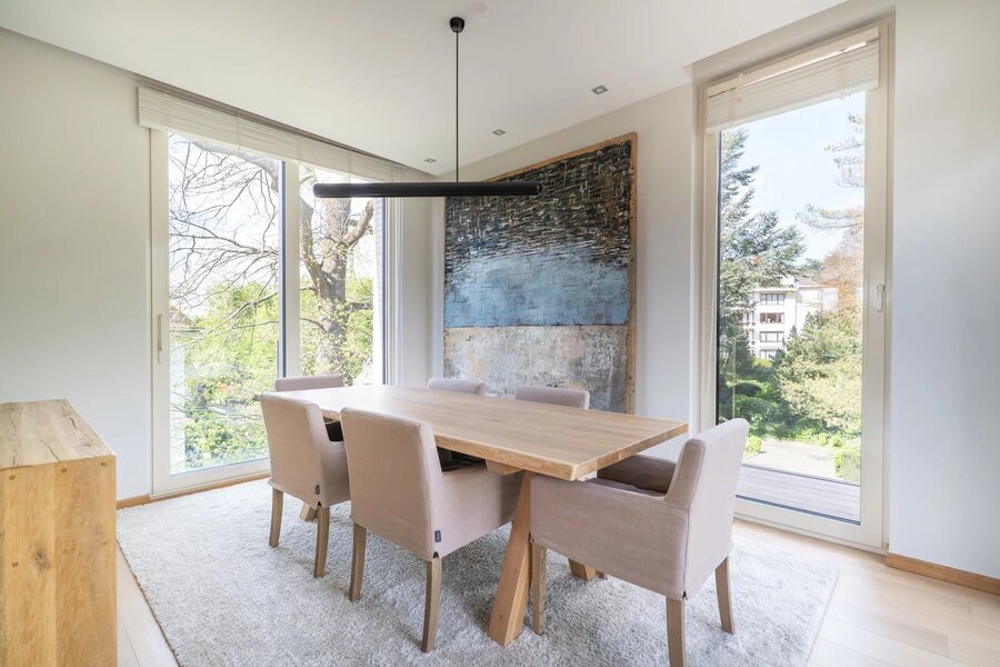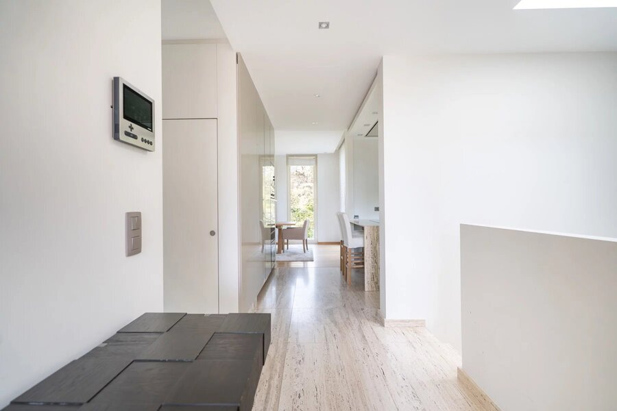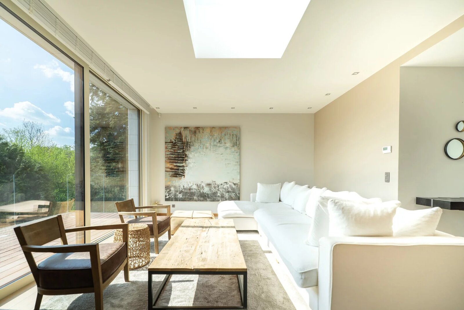 Extra: maatmeubilair van Molteni, vloer in travertin en parket, dubbele ventilatie, driedubbele beglazing, domotica, zonwering, alarm. EPC B.