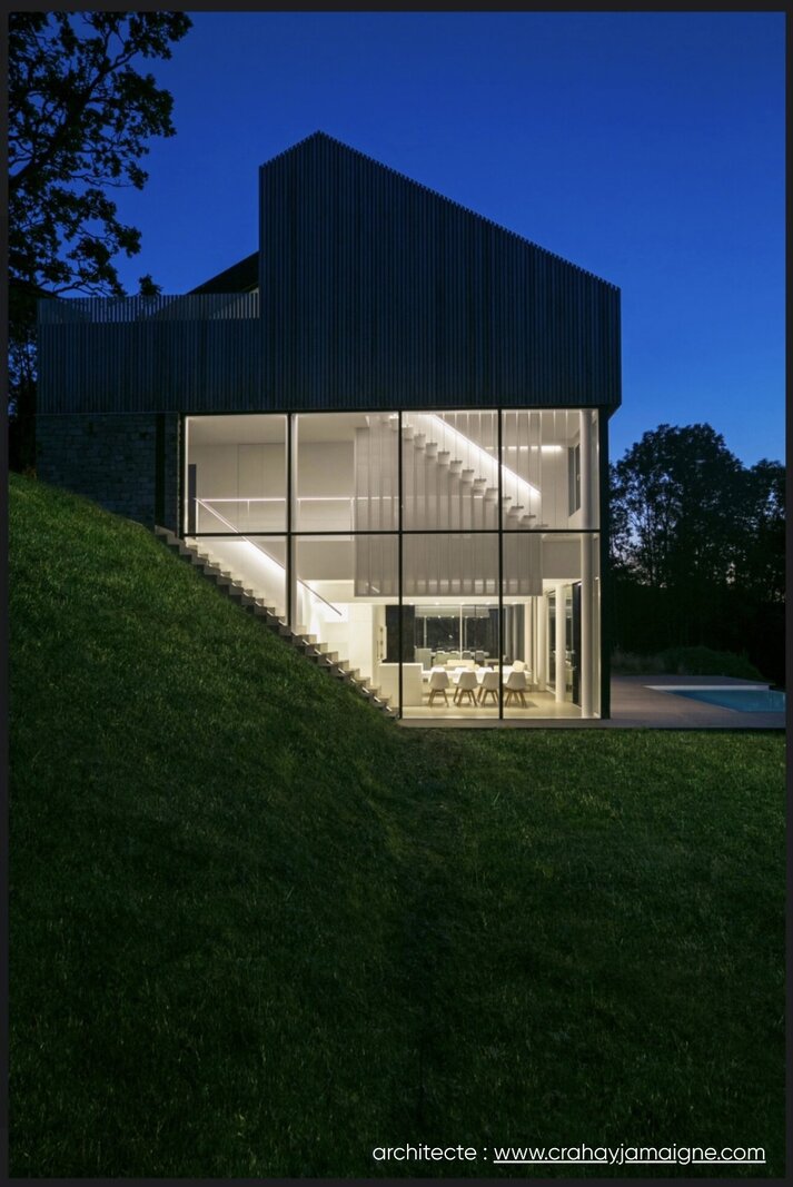 Een zeldzame eigendom die hedendaagse esthetiek, energieprestaties en een bevoorrechte natuurlijke ligging harmonieus verenigt — ideaal als hoofdverblijf of als exclusieve tweede verblijfplaats. (copyright pictures - architect : www.crahayjamaigne.com)