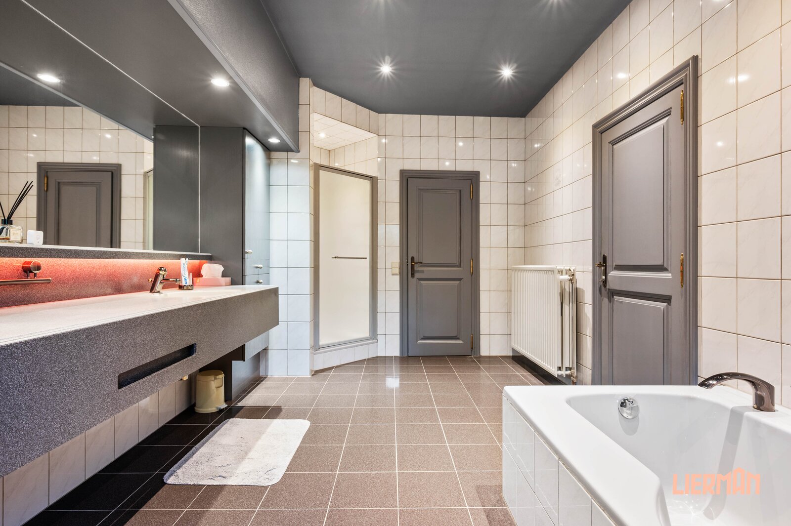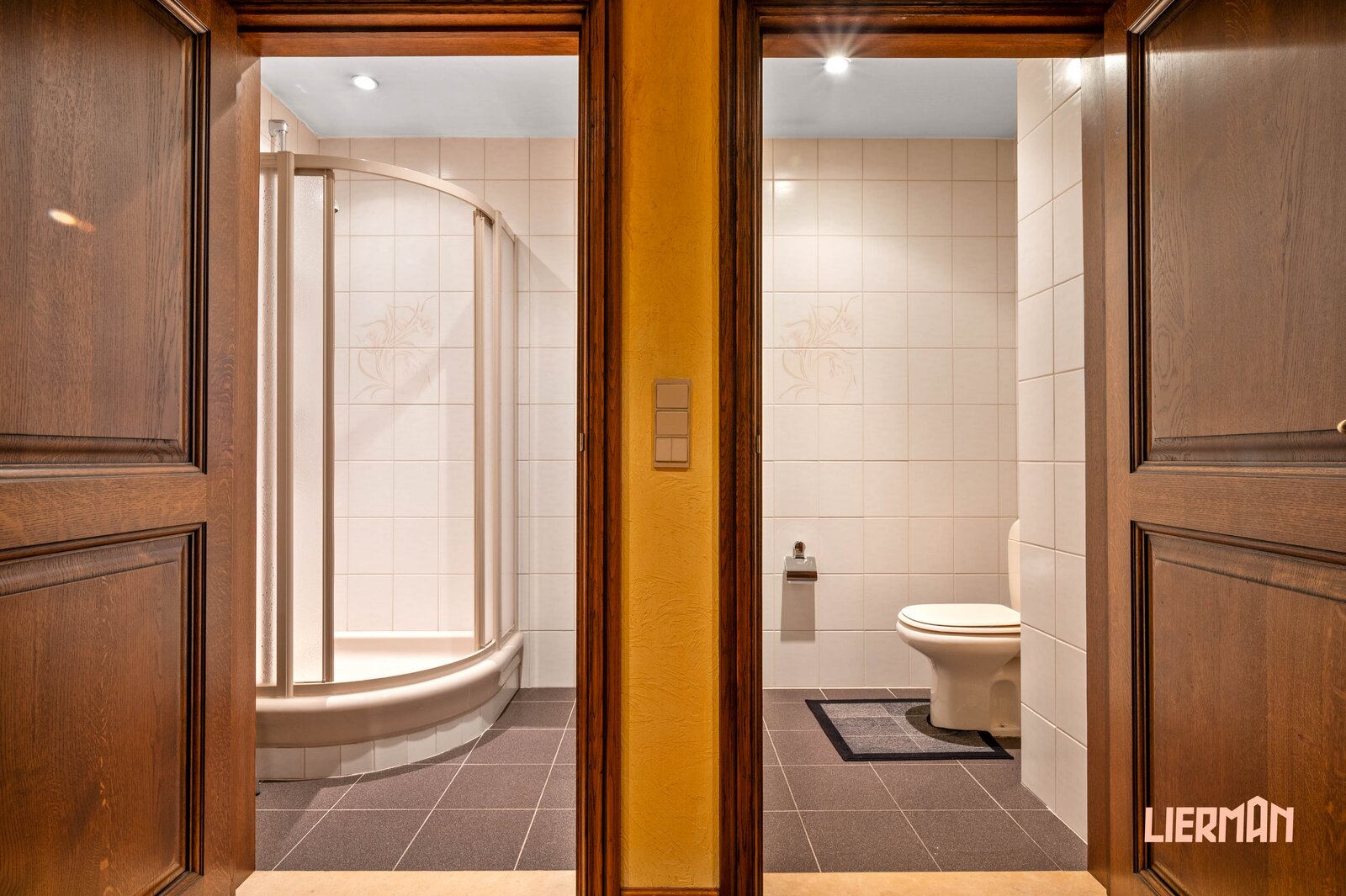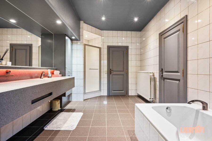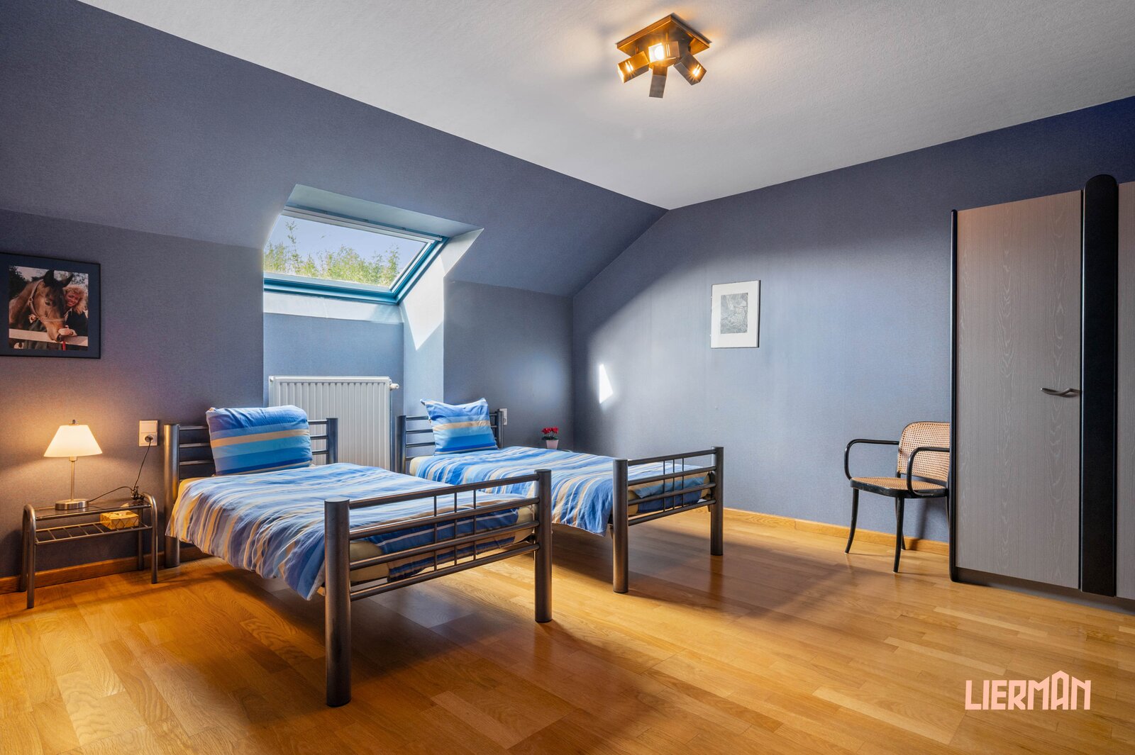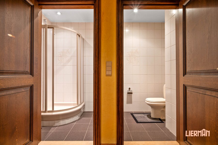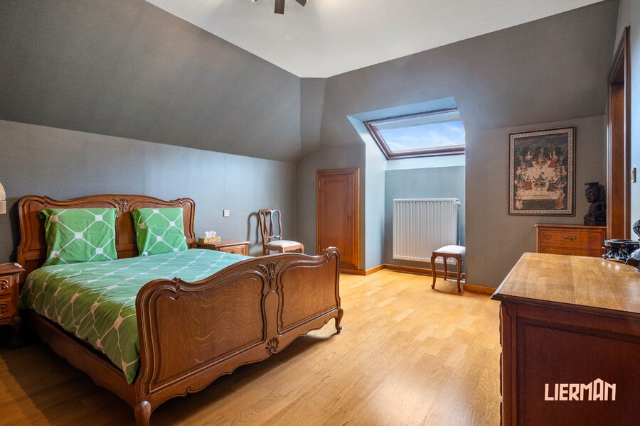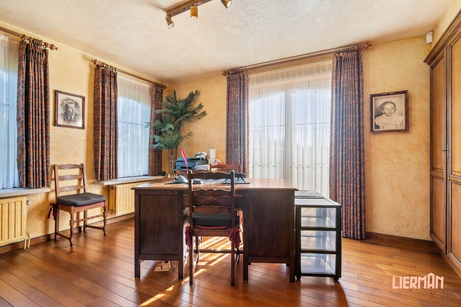 Deze bungalow heeft op heden een slaapkamer mét badkamer en dressing op het gelijkvloers, en daarnaast 3 slaapkamers met apart sanitair op de verdieping. Vooraan ook nog een apart bureel, ideaal dus voor cohousing, wonen op het gelijkvloers, of voor een praktijk/bureel met wachtruimte.