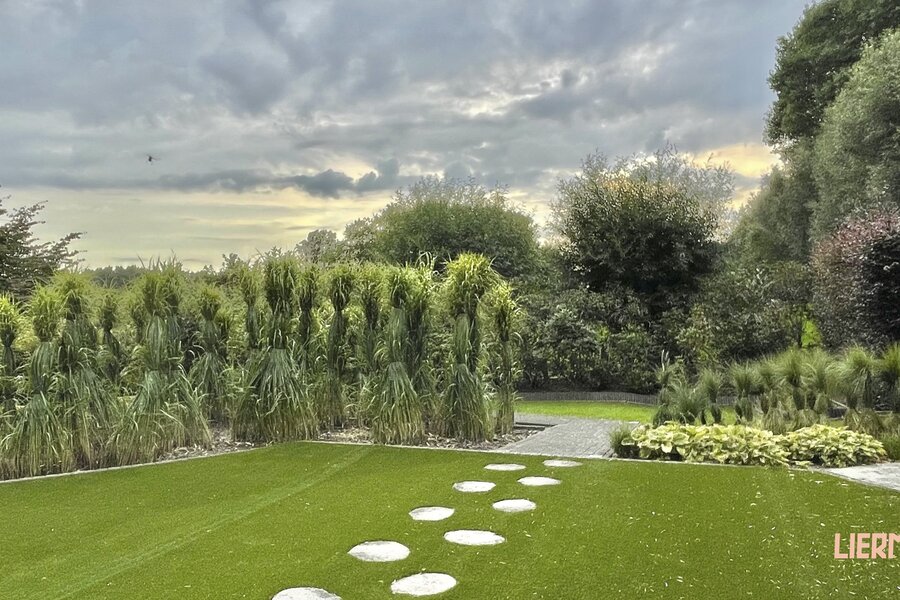 De tuin is mooi aangelegd, heeft een waterpartij en groot terras -met ingebouwde bbq- en is onderhoudsvriendelijk aangeplant. Achteraan beschermd zicht op de Blakmeershoeve, er is geen inkijk in de tuin.