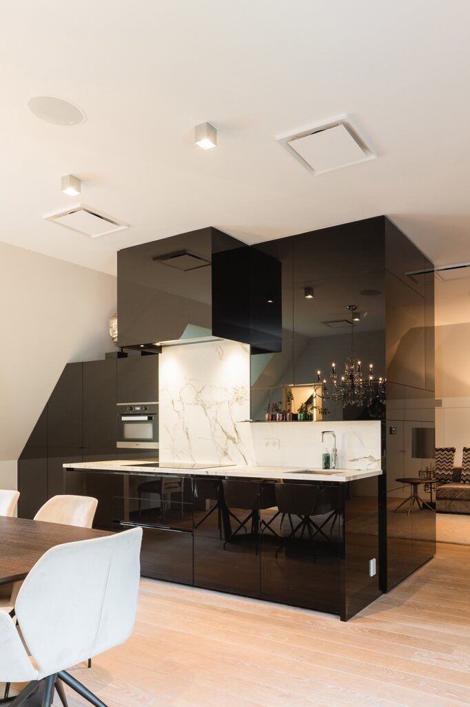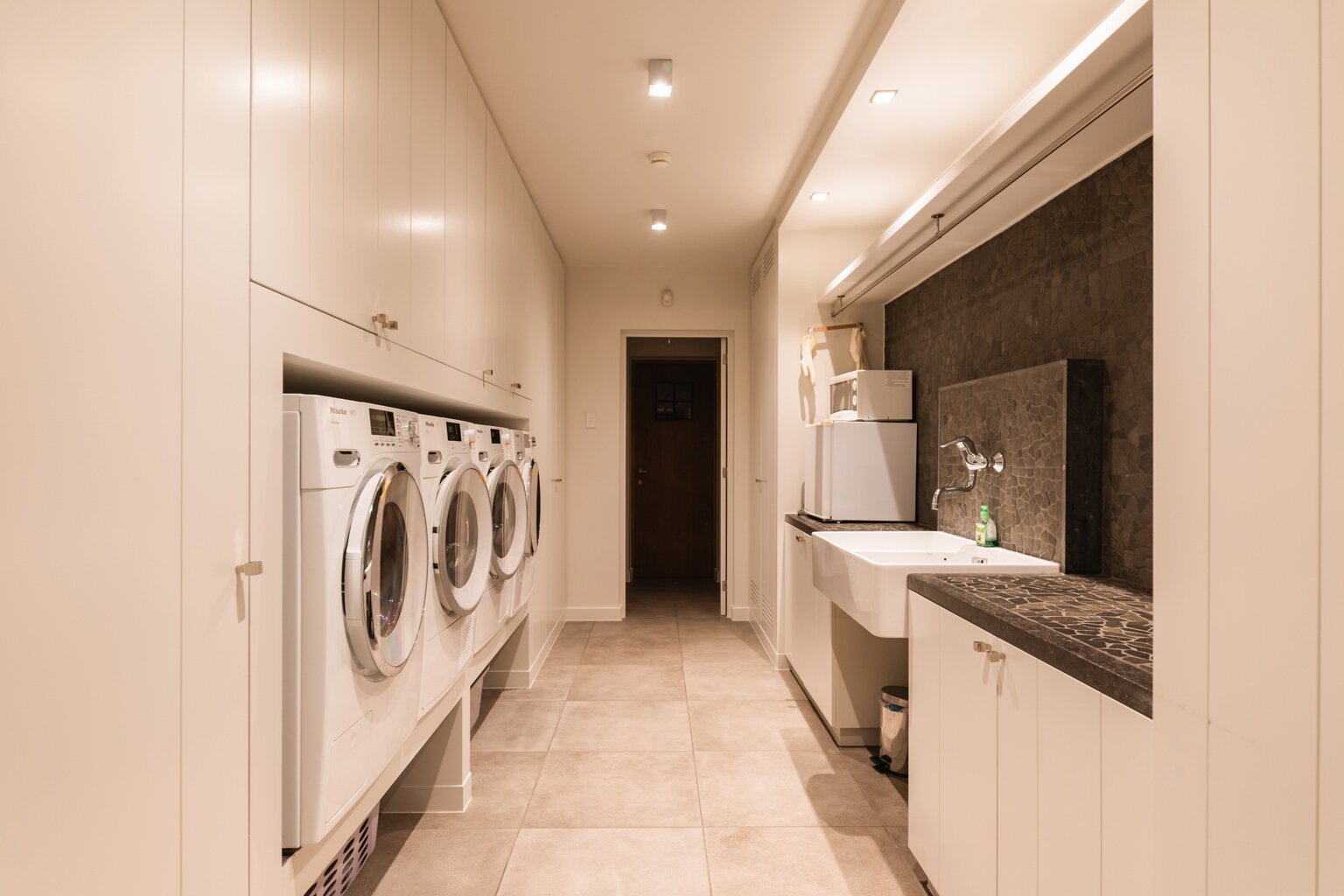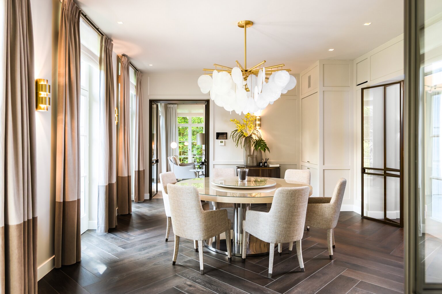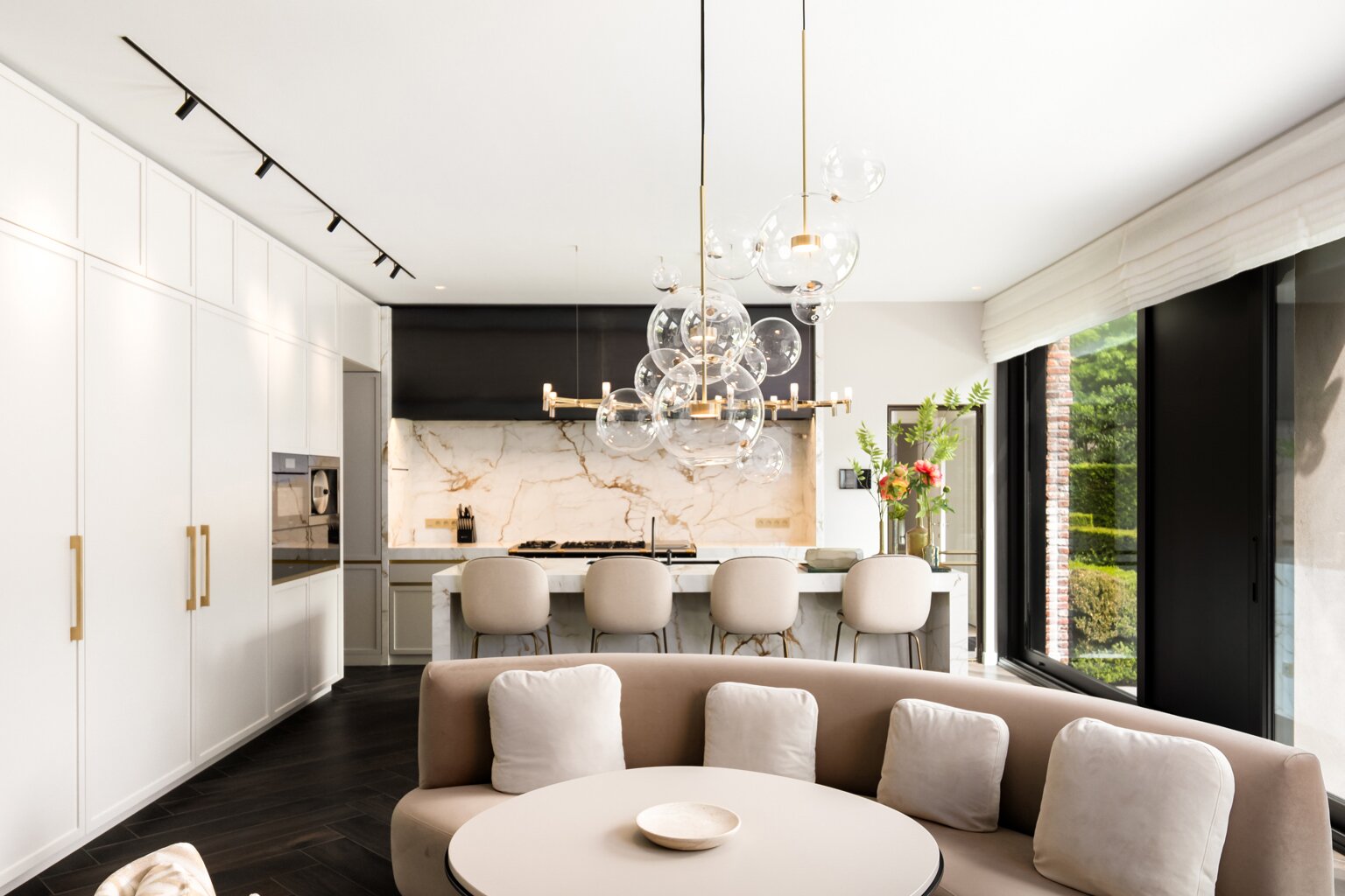De keuken is een culinair meesterwerk, volledig uitgerust met de beste apparatuur van Miele, een Lacanche fornuis, twee gigantische Gaggenau koelkasten, en aangevuld met een royale pantry voor het ultieme kookplezier.
