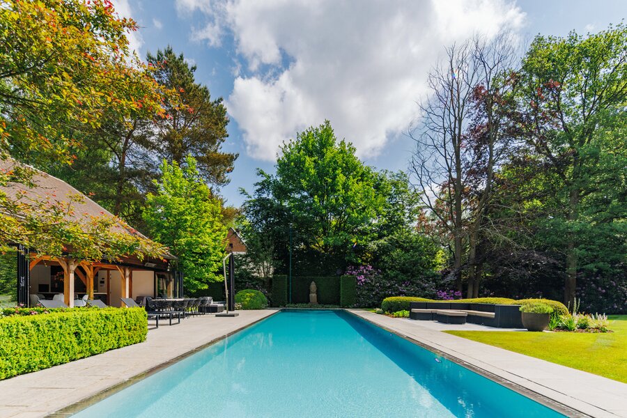 Buiten strekt de luxe zich uit naar een prachtig, king-size zwembad – het langste dat toegestaan is in Schilde – omringd door een elegant poolhouse voor ontspanning en vermaak.