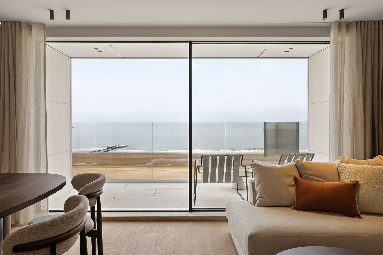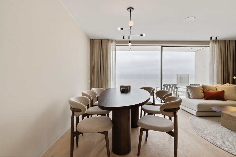 Dit 3-slaapkamerappartement van 105 m² met 15 m² terras op de zevende verdieping biedt een intiem en elegant toevluchtsoord in het hart van Het Zoute. De Skyframe ramen zorgen voor een open gevoel en brengen het buitenleven subtiel naar binnen.