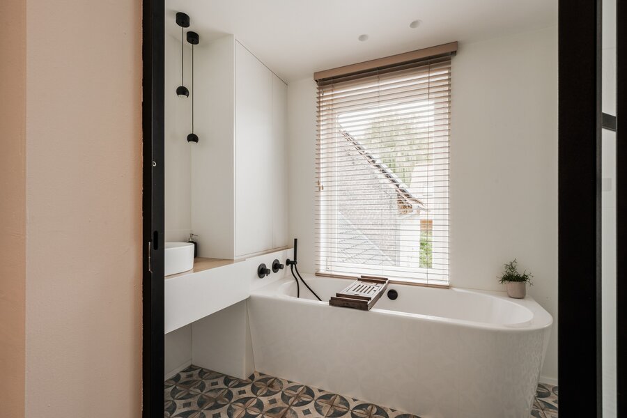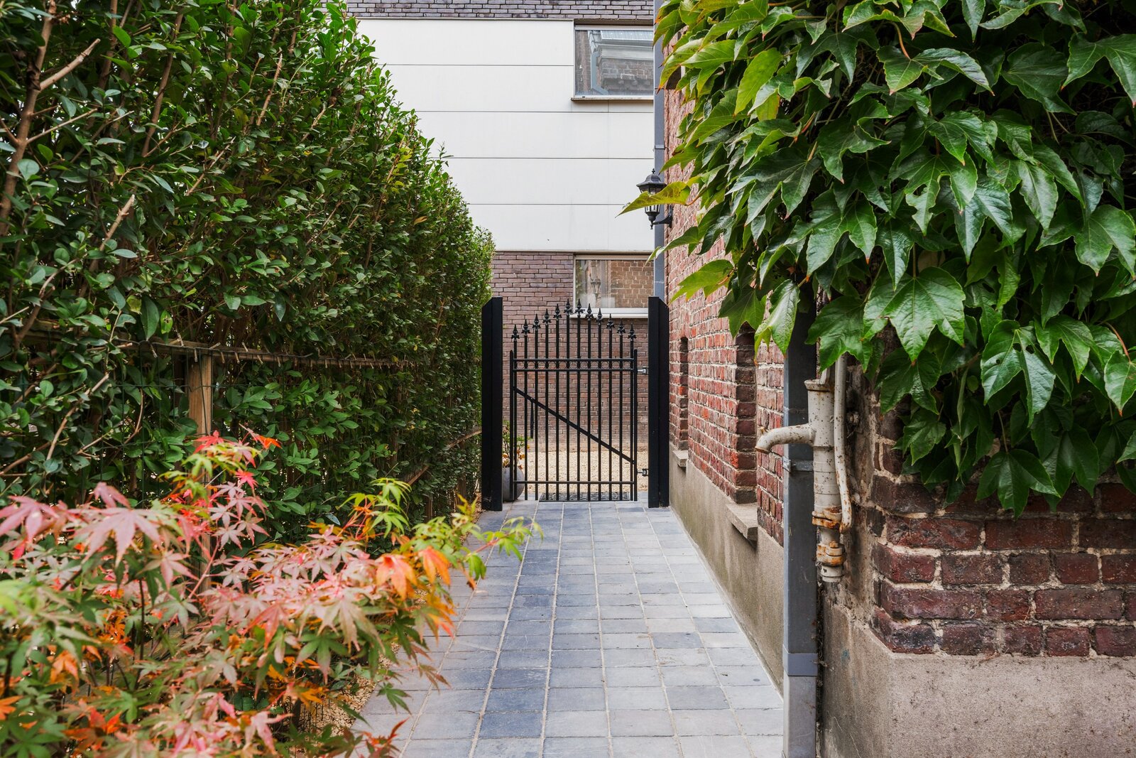 Tussen de herenwoning en de nieuwbouwwoning ligt een gezellige binnenplaats, een sfeervolle plek die beide gebouwen verbindt en uitnodigt tot samenzijn. Achteraan strekt zich een prachtige, diepe tuin uit: een oase van rust waar je volop kan genieten van het buitenleven. Bovendien is er achteraan een handige uitweg.