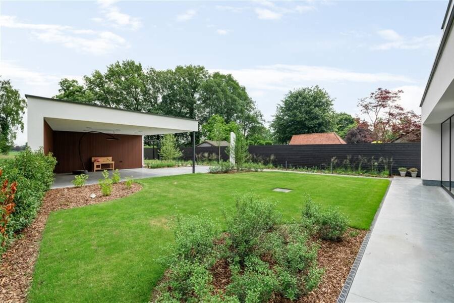 Hoogwaardig afgewerkte nieuwbouw woning met aangelegde tuin in landelijke omgeving op 1052 m²