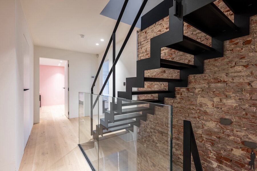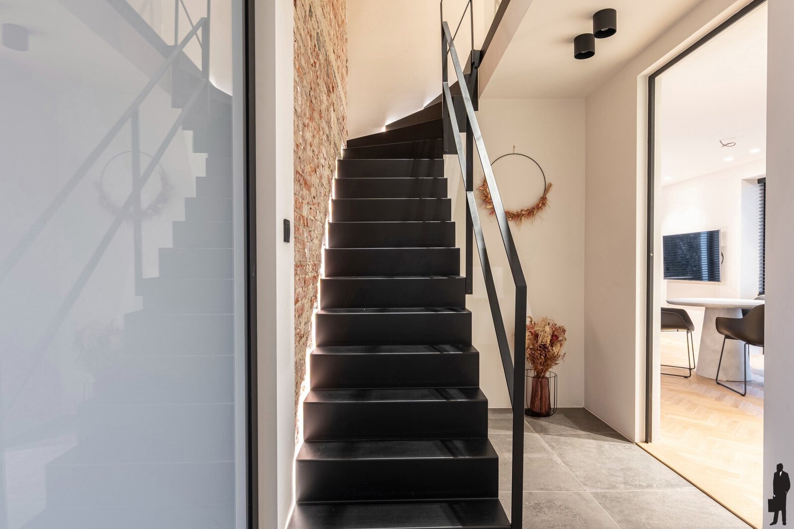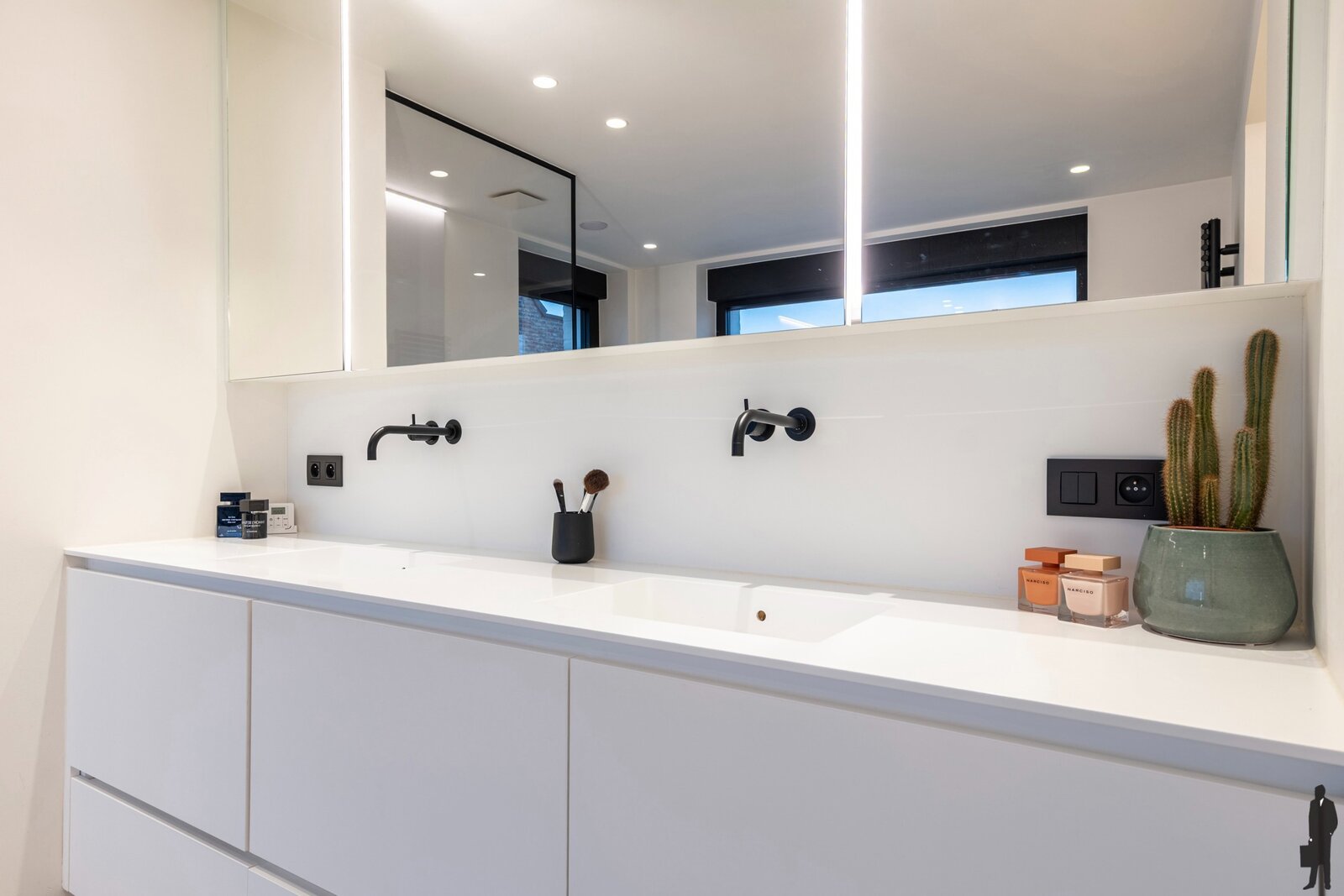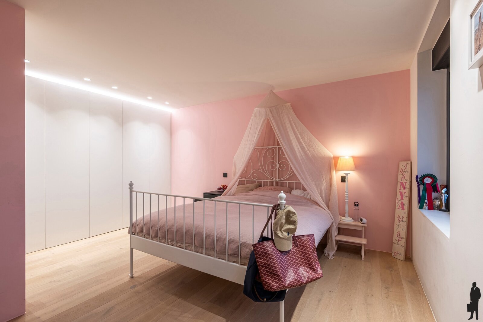 De moderne trap met indirecte verlichting leidt naar de nachthal. Hier bevindt zich de riante mastersuite met slaapkamer, dressing voorzien van ingemaakte kasten en een ruime, luxueuze badkamer. Daarnaast zijn er twee grote kinderkamers, eveneens uitgerust met ingemaakte kasten, en een tweede badkamer. Alle slaapkamers beschikken over rolluiken.