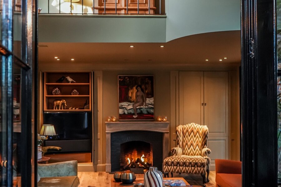 Centraal in de woning bevindt zich een ruime orangerie die de verschillende leefruimtes met elkaar verbindt. Deze ruimte creëert een open en aangename sfeer, met aansluitend een gezellige bar en zicht op de wijnkelder — perfect voor avonden in goed gezelschap.