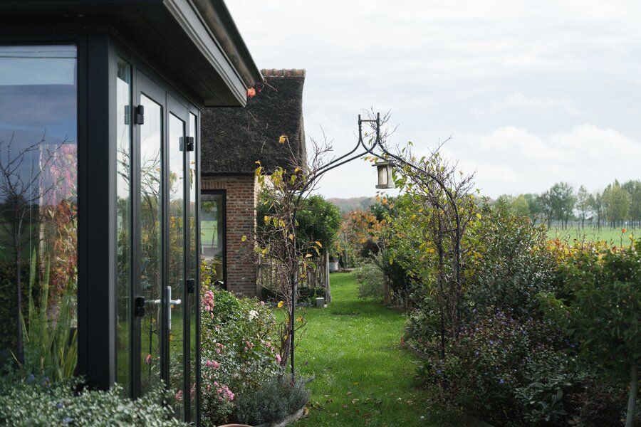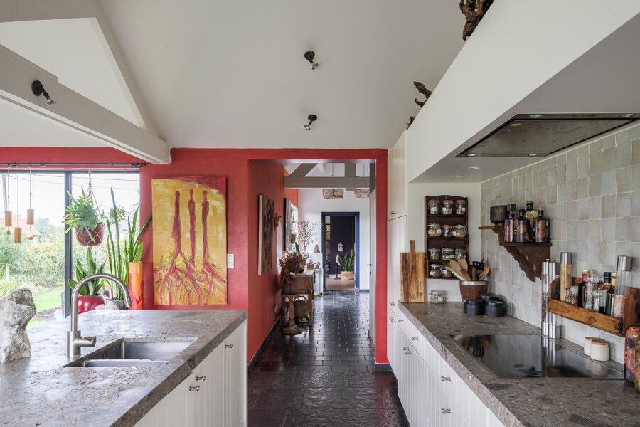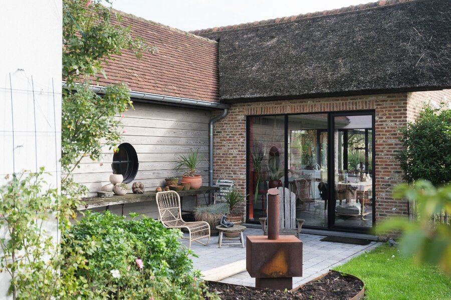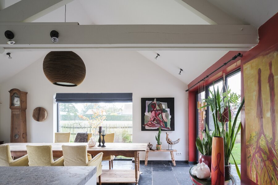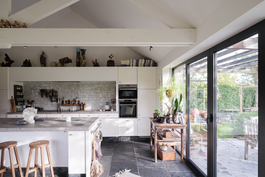 De leefkeuken met kookeiland vormt het hart van de woning – een stijlvol samenspel van hedendaags comfort en landelijke accenten. Op de bovenverdieping bevinden zich 3 slaapkamers en een badkamer.