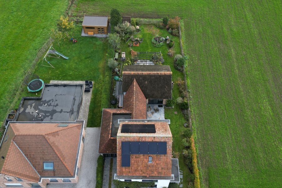 Het perceel van 730 m² maakt naast de woning plaats voor een charmant aangelegde tuin met meerdere zithoeken, perfect georiënteerd op het zuiden. De woning zelf beschikt over een bruikbare vloeroppervlakte van 244 m² en werd in 2015 volledig vernieuwd met oog voor kwaliteit en duurzaamheid. Warmtepomp, zonnepanelen en een thuisbatterij garanderen een lage energiekost en een toekomstgerichte woonbeleving.