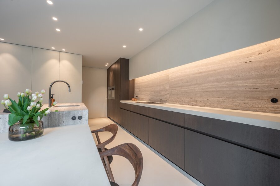 Waar esthetiek en kwaliteit de nodige aandacht genoten, werd elke ruimte ook functioneel optimaal benut. Zo is voldoende opbergruimte gecreëerd en is de subtiel ingewerkte wasplaats toegankelijk via een aparte ingang.