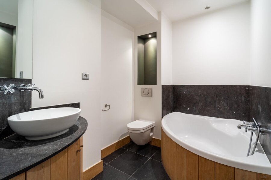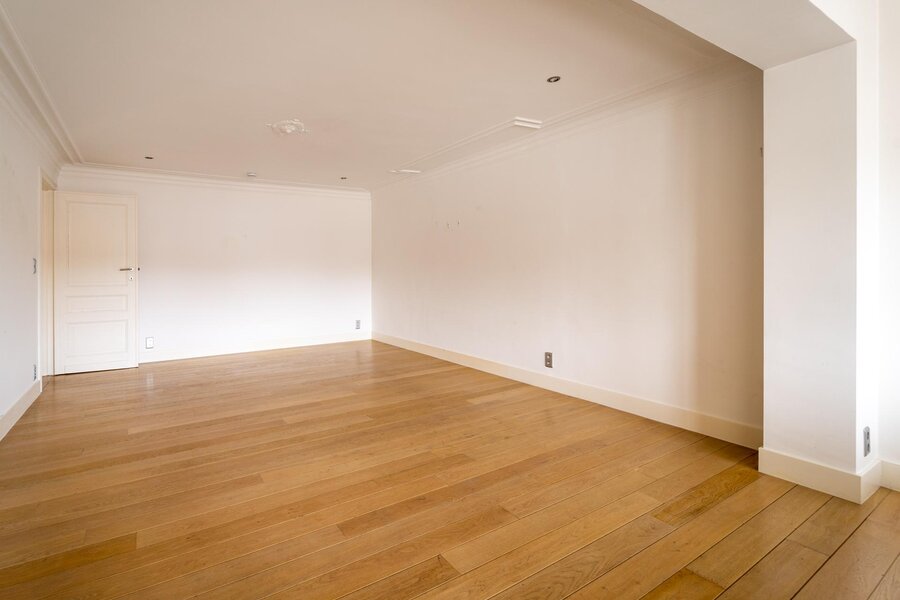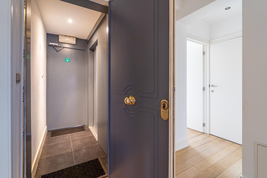 Het appartement op de derde verdieping (met lift) is bereikbaar via de koetsingang van een gebouw in eclectische stijl uit het begin van de 20e eeuw en komt uit in een hal die leidt naar de woonkamer. Deze woonkamer beschikt over een volledig uitgeruste open keuken, woonkamer en eetkamer en biedt toegang tot een perfect georiënteerd terras met vrij uitzicht op de tuin. Het slaapgedeelte bestaat uit twee slaapkamers, een badkamer en een doucheruimte. Een apart kantoor maakt het appartement compleet.