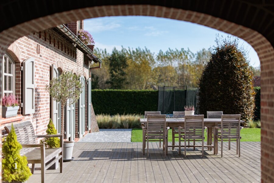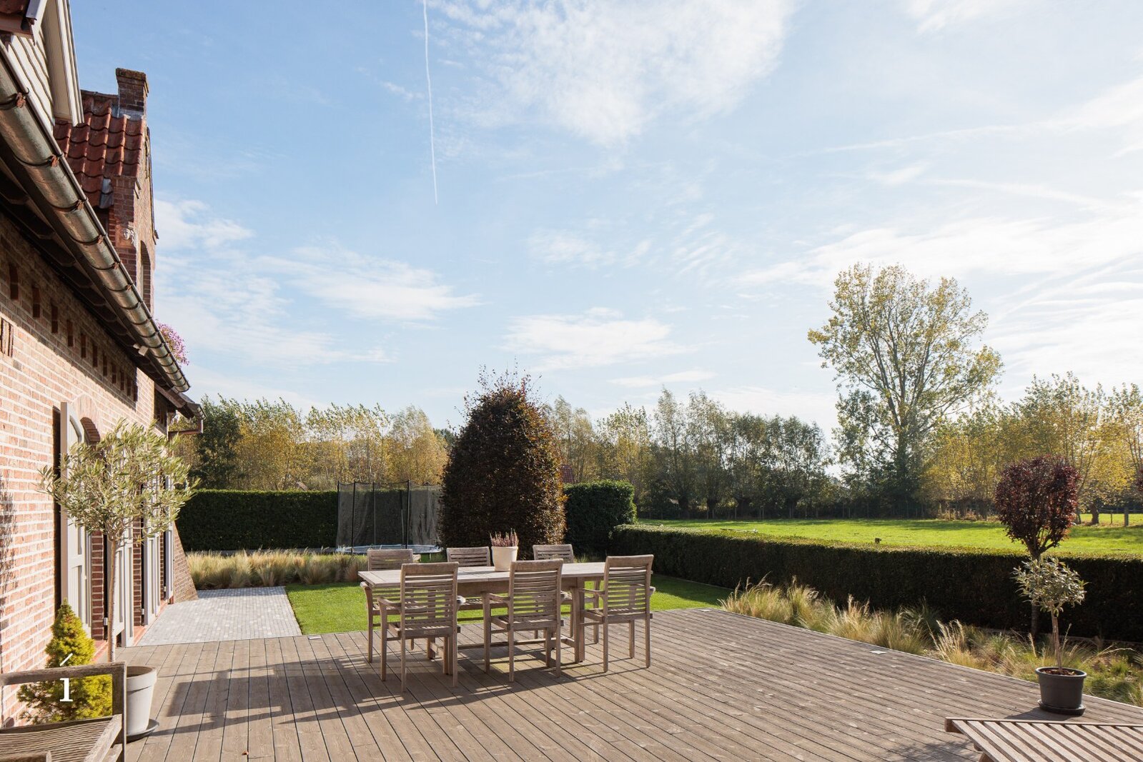 De tuin sluit aan op een groot stuk weiland met paardenstal, ideaal voor wie houdt van dieren of graag buiten leeft. De vergezichten, de volgroeide bomen en het zuidgerichte terras creëren een gevoel van ruimte en adem.