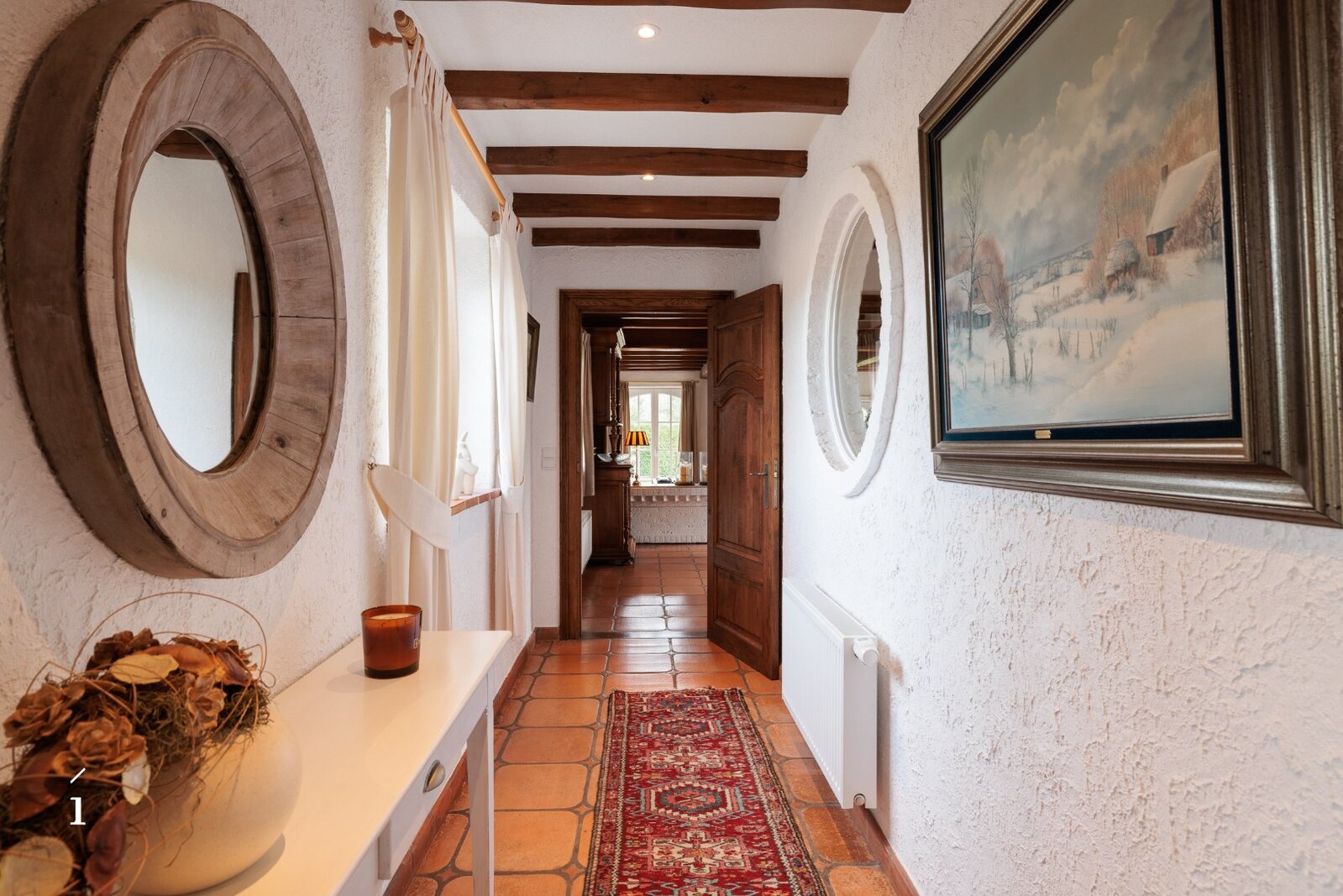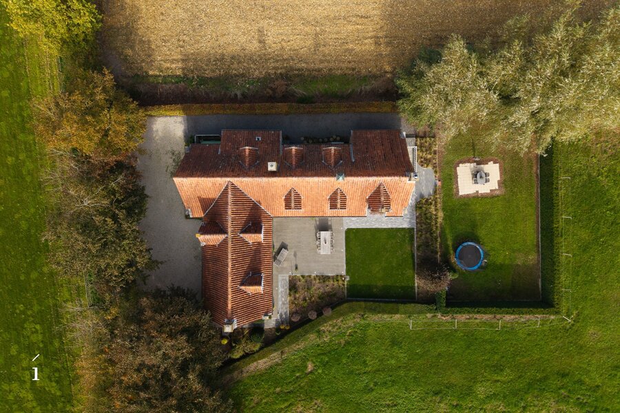 Omringd door rust en groen ligt deze karaktervolle landelijke woning, discreet, verscholen achter een private oprijlaan. Het ruime perceel van meer dan 8.000 m² biedt volledige privacy en een open zicht over de omliggende velden - een zeldzame vondst voor wie houdt van natuur, buitenruimte en authenticiteit.