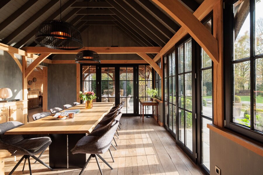 De bijbouw werd met respect voor het oorspronkelijke karakter ontworpen en opgetrokken in dezelfde authentieke stijl als het hoofdgebouw.