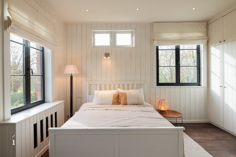 Op de bovenverdieping bevinden zich nog vijf volwaardige slaapkamers (de meeste kamers beschikken over ingemaakte kasten) en twee badkamers. Daarnaast is er een zolderruimte die naar wens kan worden ingericht als extra slaapkamer, bureau, hobbyruimte of andere functionele ruimte.