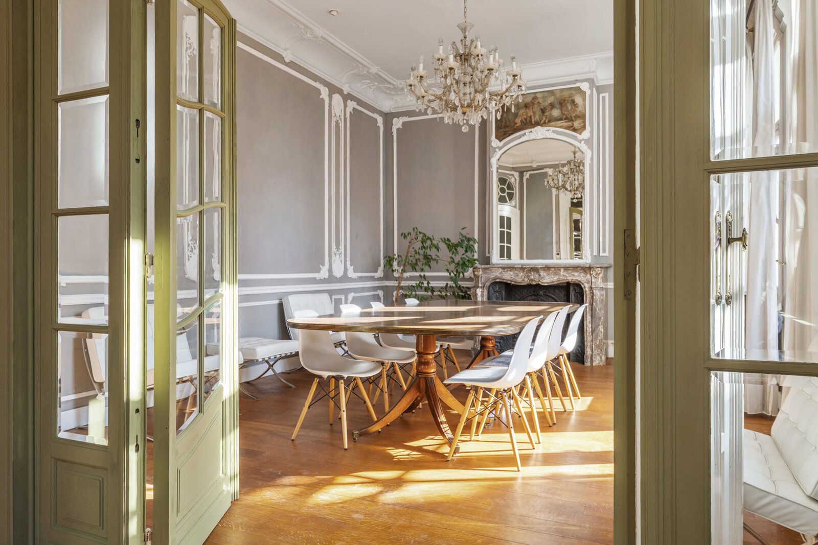Schaarbeek: Victoire - Junot presenteert dit uitzonderlijke herenhuis in Beaux-Arts-stijl met drie gevels, gebouwd op een perceel van 2 are 20, met talrijke authentieke elementen, gebeeldhouwde decoraties, ornamenten, glas-in-loodramen, binnenfresco's, parketvloeren en ijzerwerk. Het baadt in het licht en biedt zeer mooie volumes met hoge plafonds, een oppervlakte exclusief kelders en zolder van ± 120 m² per verdieping of ± 631 m² (PEB) met kantoren, recepties, eetkamer, keukens, badkamers, slaapkamers, kleedkamer, kelders en zolder. Het dak zal tegen juni nieuw, geïsoleerd en afgewerkt zijn. Twee ingangen, waaronder een "drive-through". Garage. Tuin - binnenplaats, talrijke bewoningsmogelijkheden. Gascondensatieketel 2022. Nieuw dak 2025, wat de PEB F