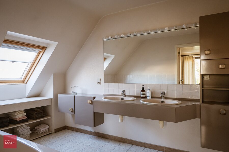 Bestaande uit inkomhal, living met open haard en eetplaats, keuken met ontbijthoek, koele berging, 3 (ev. 4) slaapkamers, badkamer, douchecel, dubbele garage met washoek. Zonnige tuin met terras op 1.139m². Elektrische verwarming "Masser".