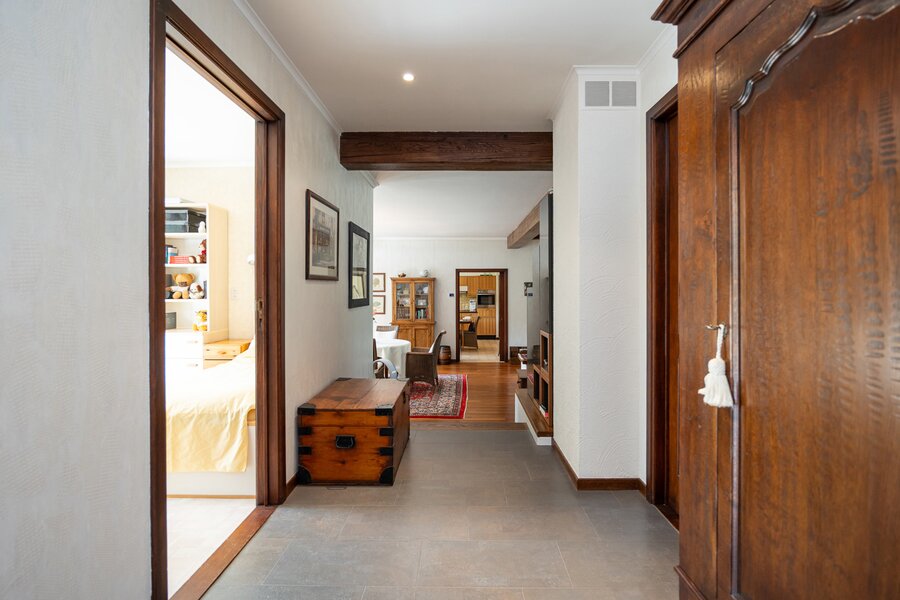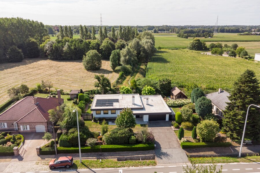 Ontdek deze lichtrijke, charmante gelijkvloerse villa, gelegen op de Nieuwe Baan in Belsele, een centrale en vlot bereikbare verbindingsas met een uitstekende bereikbaarheid naar omliggende gemeenten en voorzieningen.Bij binnenkomst wordt u verwelkomd door een ruime inkomhal met gastentoilet, waarna u doorloopt naar de sfeervolle leefruimte. De combinatie van een zit-eetgedeelte met hoogwaardige parketvloer nodigt uit tot gezellige avonden bij de open haard, terwijl de grote ramen een prachtig panoramisch uitzicht bieden op het omliggende groen.