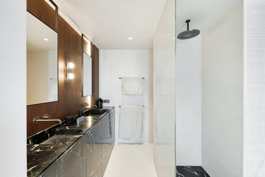 De master bedroom beschikt over een luxueuze en suite douchekamer met zeezicht. Slaapkamer 2 en 3 hebben elk hun eigen douche en genieten eveneens van uitzicht op zee.