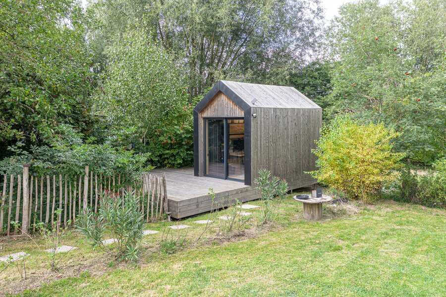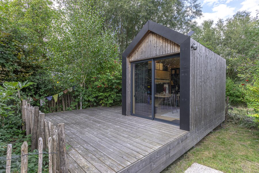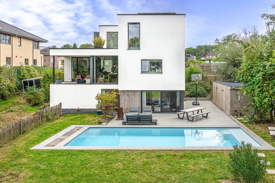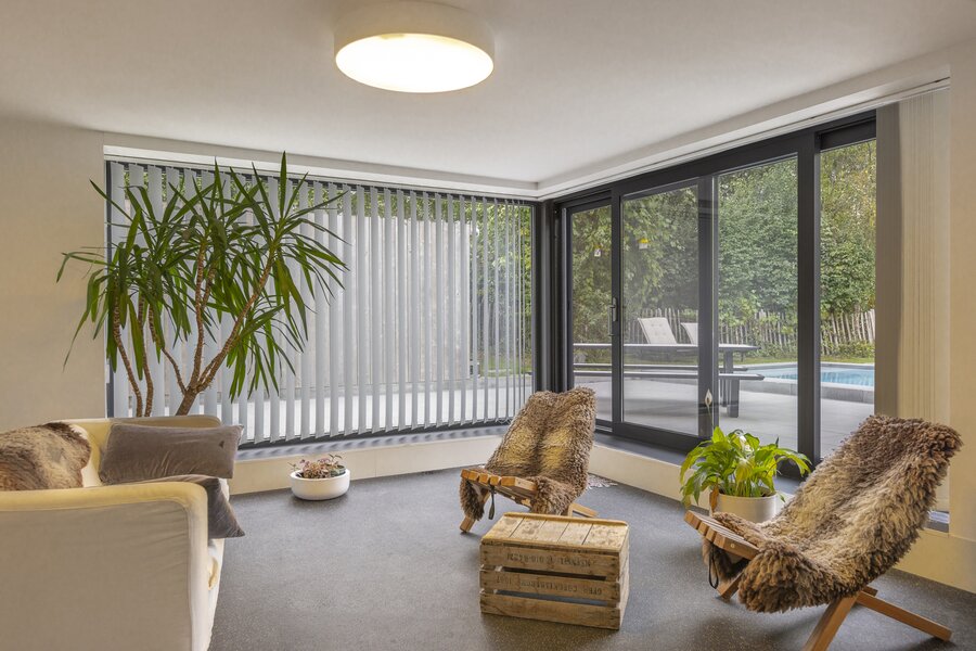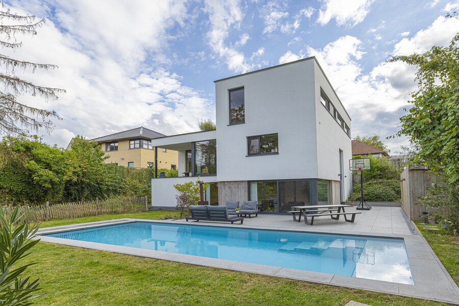 Energiezuinige villa met praktijk, zwembad en tuinkantoor.