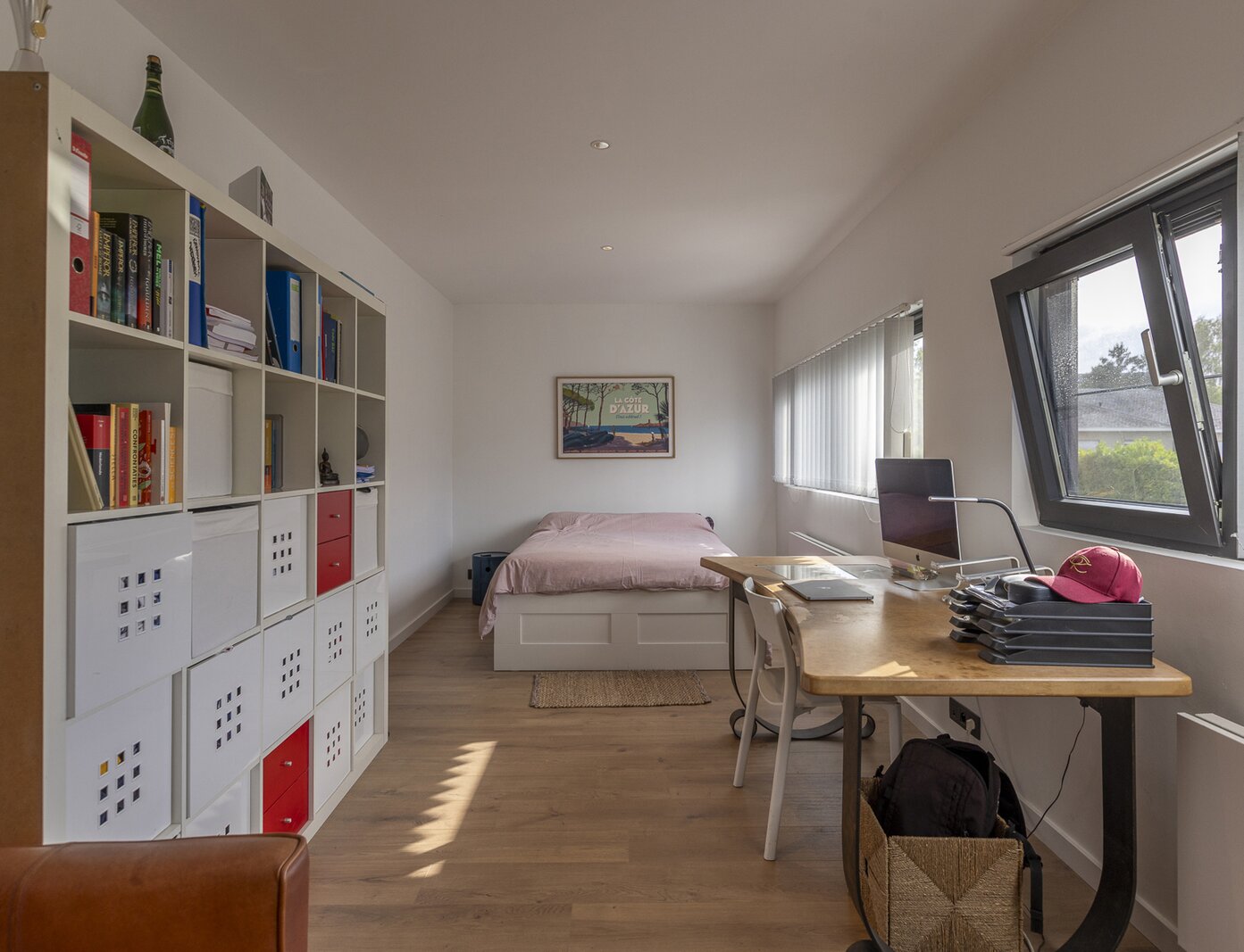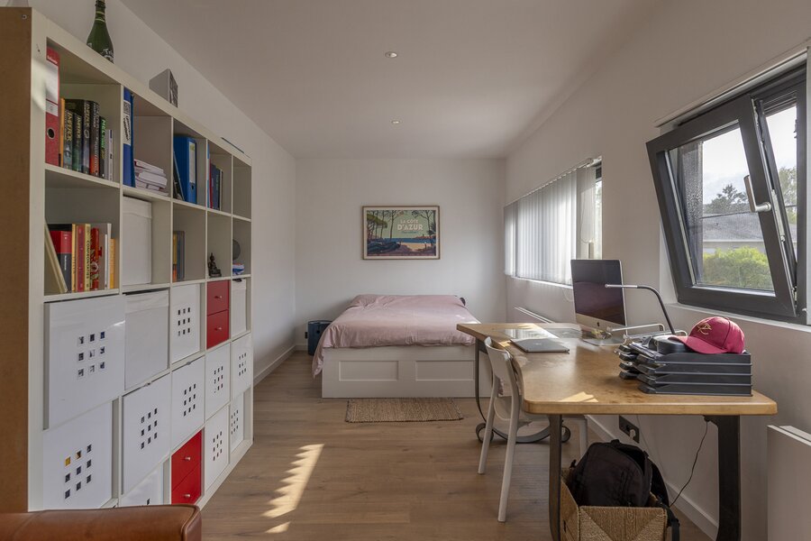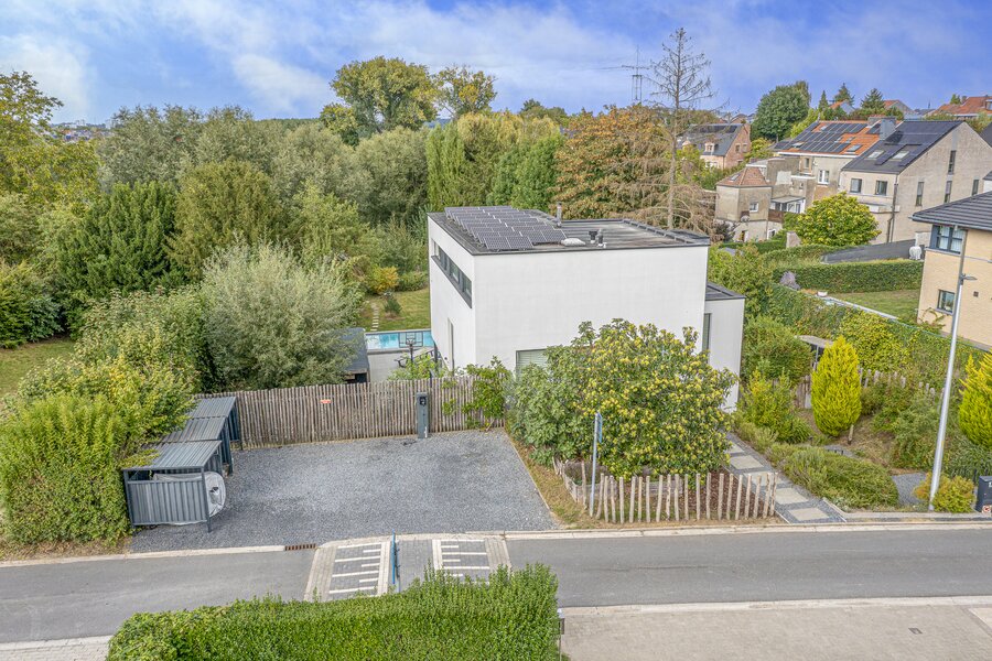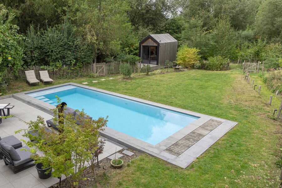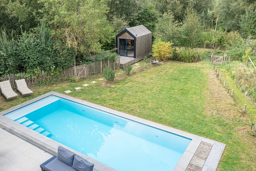 Aan de voorgevel zijn 3 autostaanplaatsen (1x met laadpaal) en fietsenberging terug te vinden. In de achtertuin het prachtige zwembad, tuinhuis en een leuke groenzone als habitat voor gezin en (huis)dier met extra tuinkantoor (10m²) voorzien van elektriciteit, isolatie en mooie Thermowood afwerking.