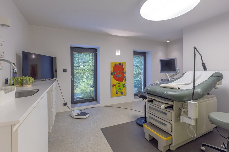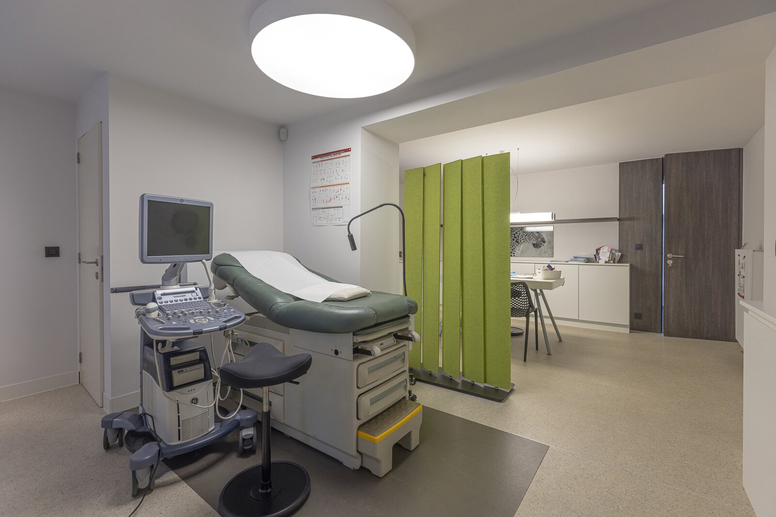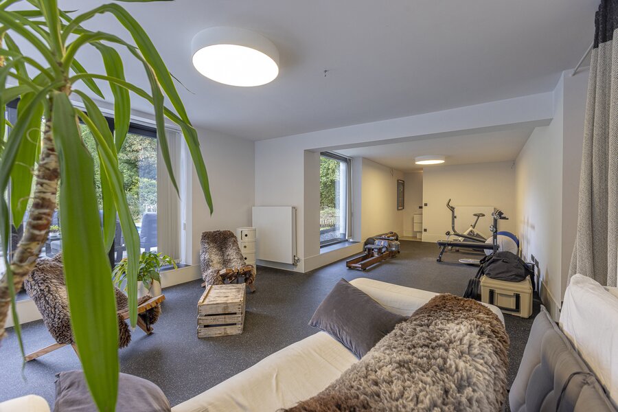 Het souterrain, op tuinniveau is ingericht als praktijkruimte met eigen ingang, ideaal voor wie professionele activteiten en wonen wil combineren Er is een ontvangstruimte met toilet, twee burelen, waarvan één ingericht als medische praktijk aanwezig.