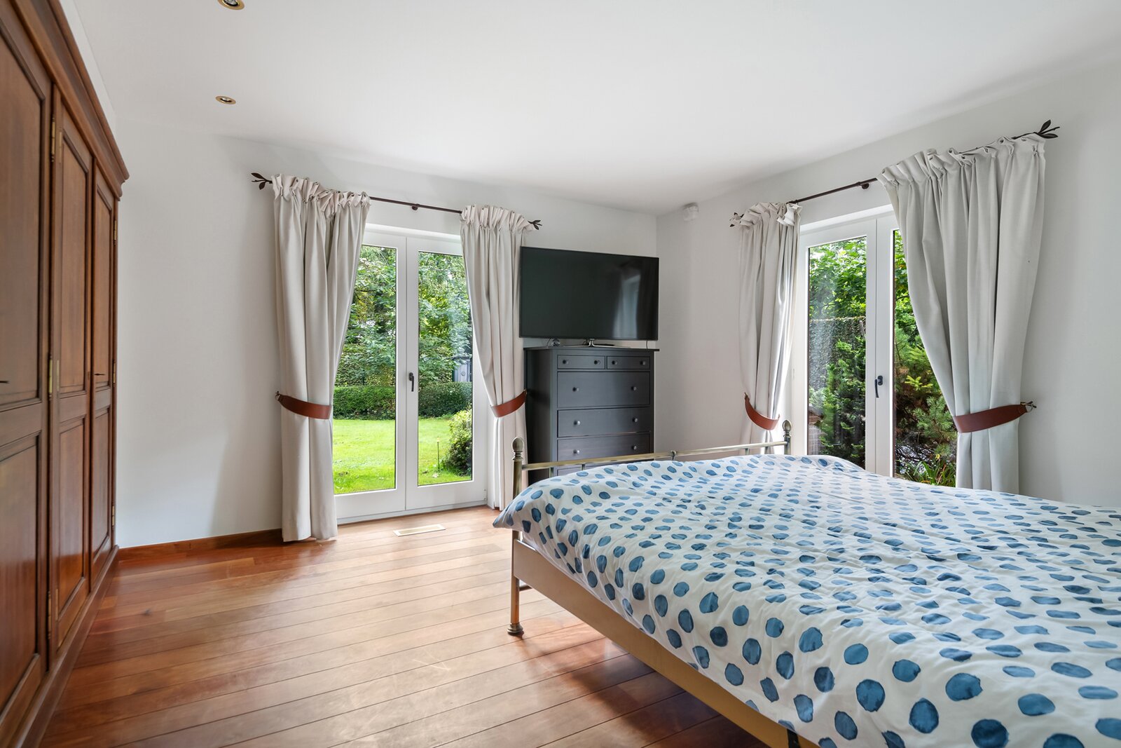 Het gelijkvloers biedt een master bedroom met ingebouwde kasten en een recent vernieuwde badkamer. Daarnaast is er een extra kamer die kan dienen als slaapkamer, bureau of praktijkruimte. Boven vindt u twee slaapkamers, een badkamer, een ruime berging en een multifunctionele ruimte (speelkamer, fitness of tweede leefruimte). Dankzij een aparte trap vanuit de garage is zelfs een kangoeroewoning mogelijk.