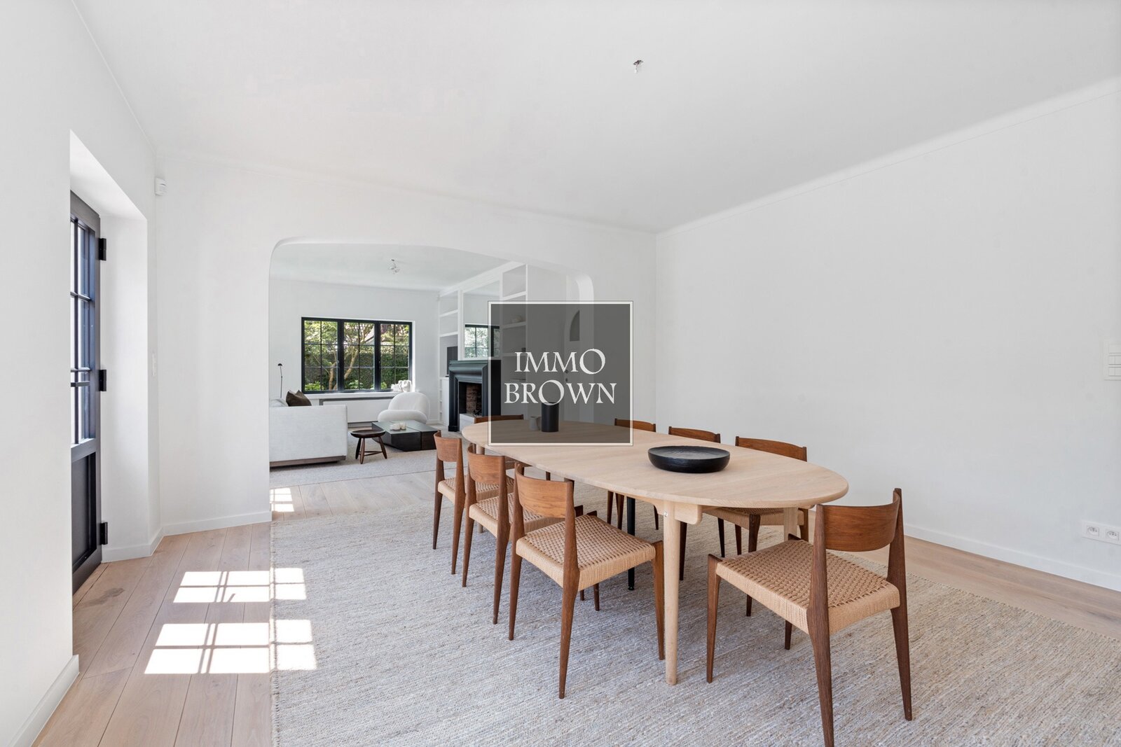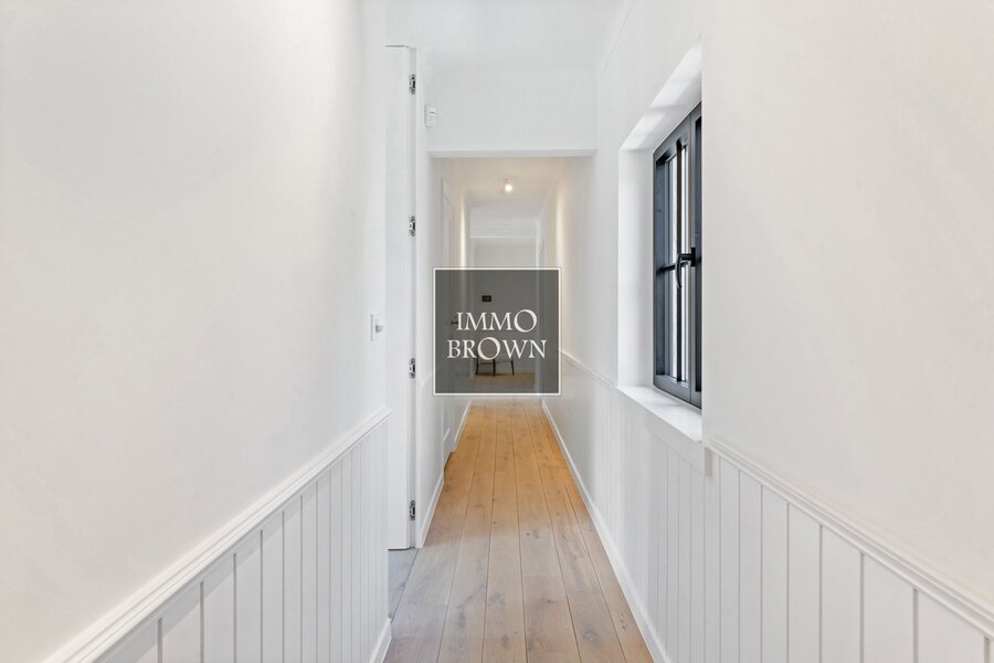 Via de statige inkomhal met vestiaire en gastentoilet betreedt u een lichtrijke leefruimte, waar authentieke elementen en moderne luxe naadloos samenkomen.