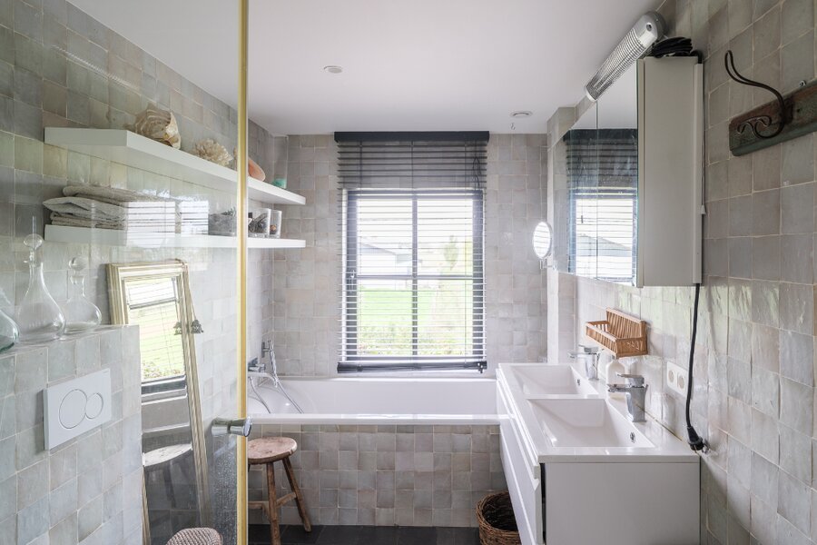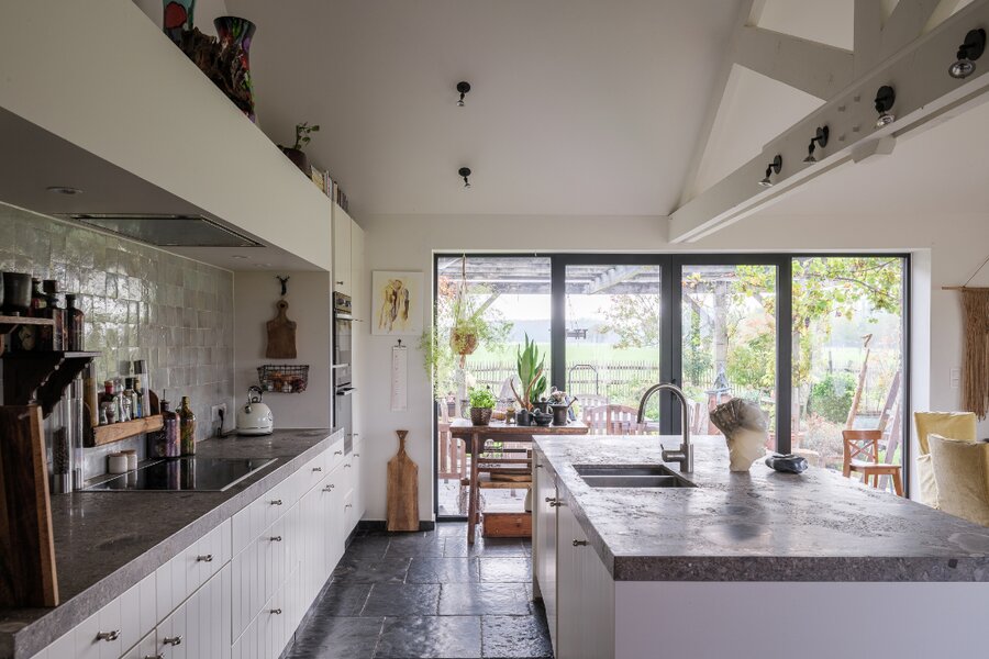 De leefkeuken met kookeiland vormt het hart van de woning – een stijlvol samenspel van hedendaags comfort en landelijke accenten. Op de bovenverdieping bevinden zich 3 slaapkamers en een badkamer.