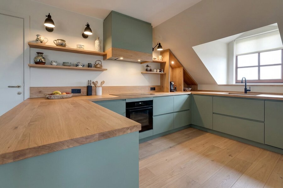 Twee slaapkamers ingericht als leefruimte met volledig uitgeruste open keuken