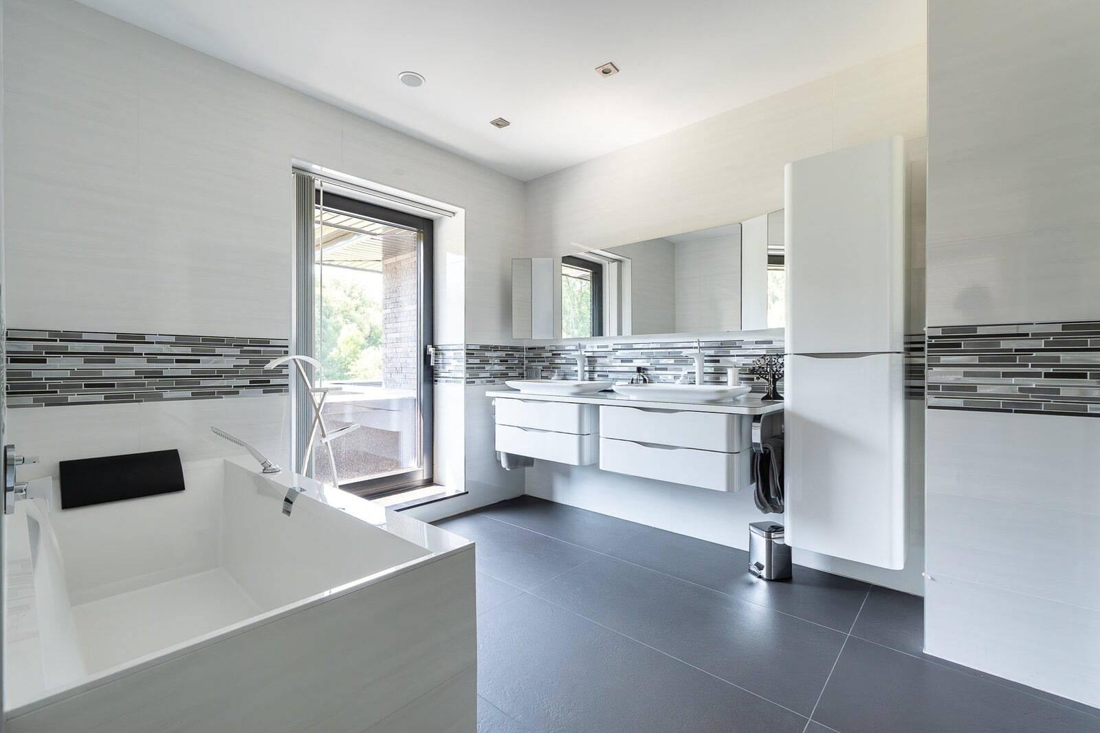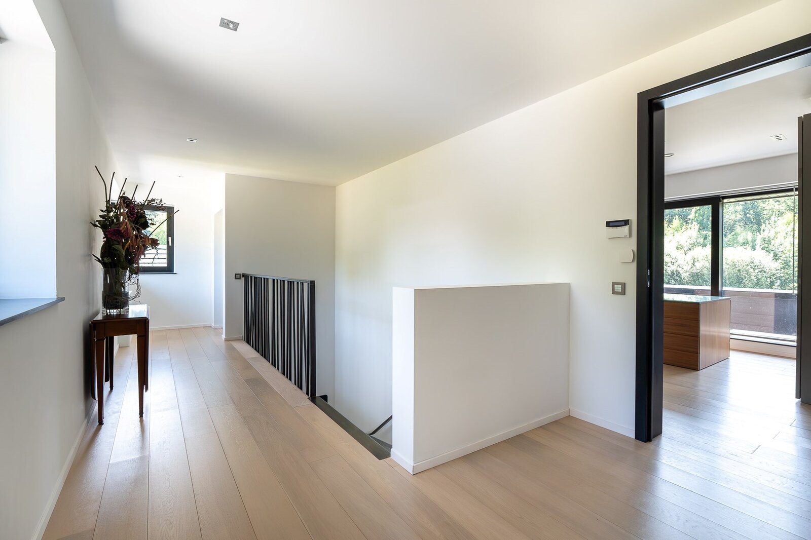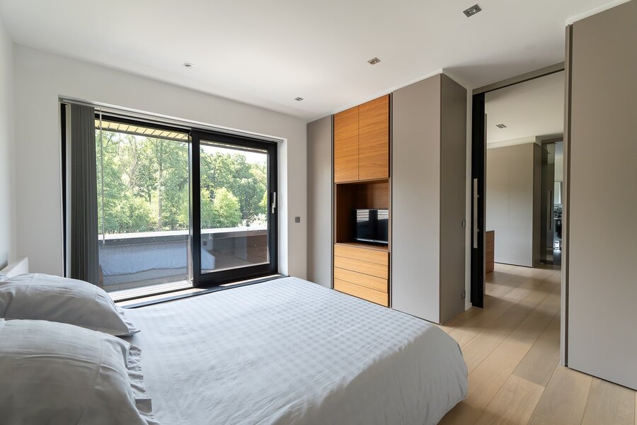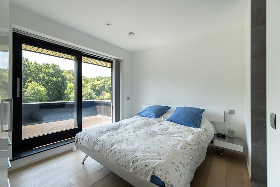 Verder zijn er nog de ruime inkomhal, 4 slaapkamers (elk met terras, eigen badkamer en op maat gemaakte kleedkamer), een bureau, een garage en een volledige kelder.