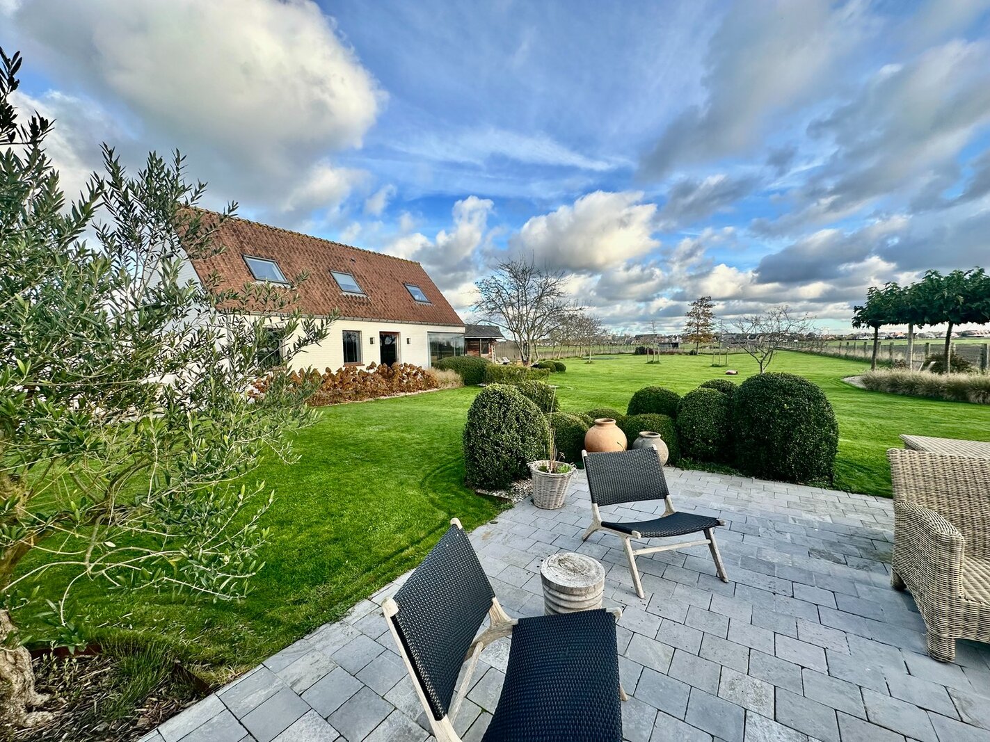 Charmante hoeve gelegen op een terrein van 5.460m2, genietend van vergezichten op de polders van Knokke. Indeling: inkomhal met gastentoilet. Ruime woon- en eetkamer met gashaard met toegang tot het terras en de zuid-west gerichte tuin. Open volledig geïnstalleerde keuken met ontbijteiland genietend van prachtige open zichten. Aan de leefruimte: gezellige veranda (nu bureauruimte). Eerste verdieping: Master bedroom met aansluitend badkamer (bad, lavabo en toilet). 3 slaapkamers. Aparte douchekamer (douche, lavabo en toilet). Inpandige garage voor twee wagens / wasplaats. Aparte atelier: ruime gezellige woonkamer met geïnstalleerde open keuken met eetkamer, genietend van de prachtige zichten naar de polders. Op het verdiep zijn er twee volwaardige slaapkamers met elk hun eigen douchekamer en toilet. Meerdere parkeerplaatsen voor de woning. Contacteer Knokke Real Estate voor een plaatsbezoek.