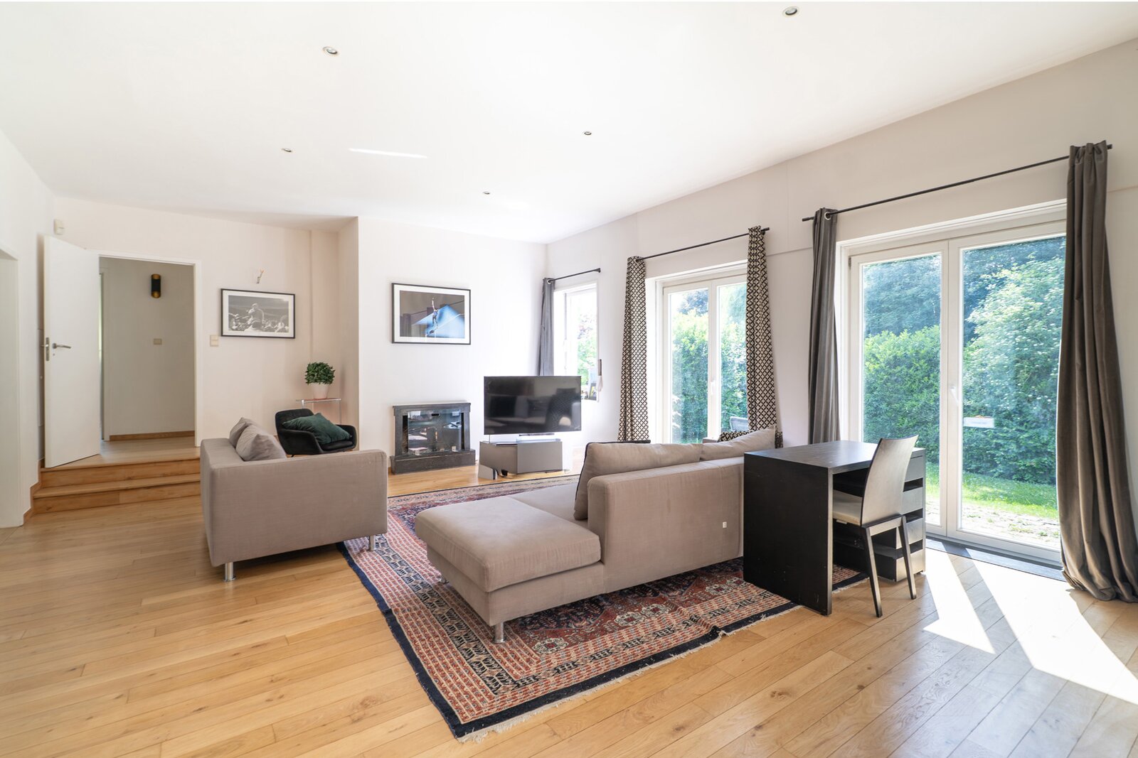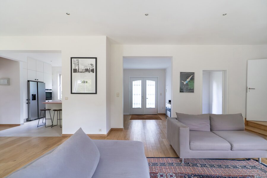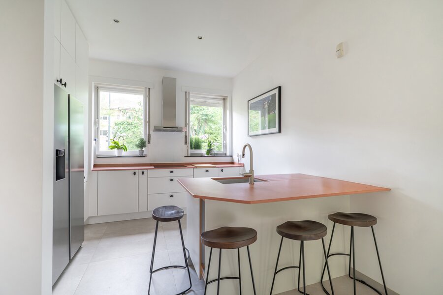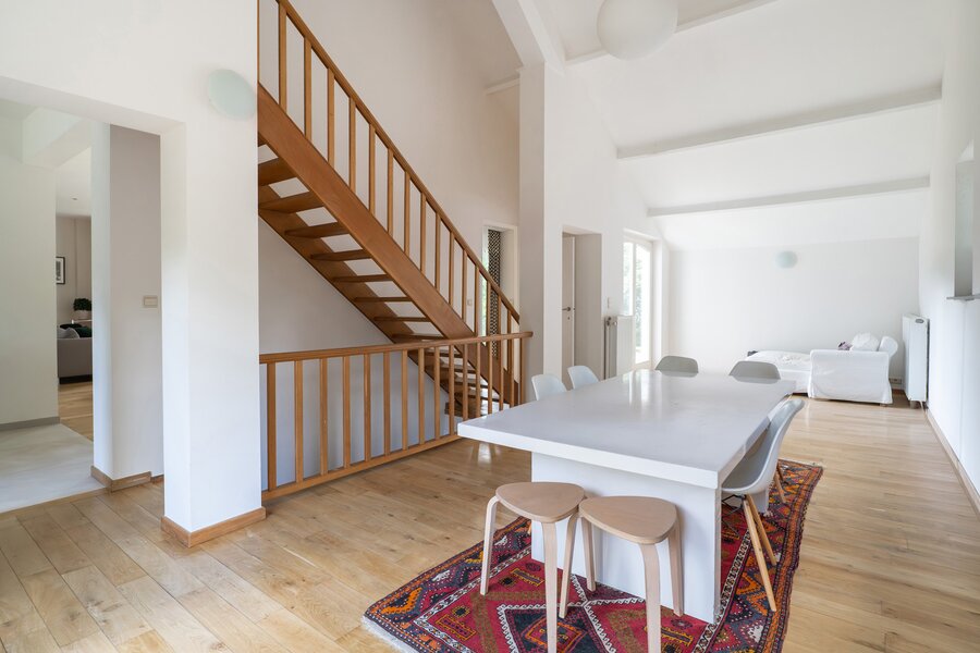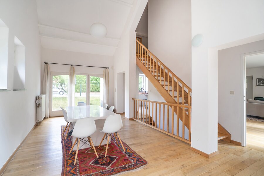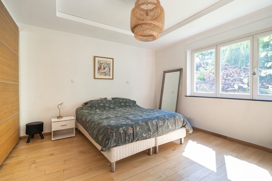 In de prestigieuze wijk Prins van Oranje, grenzend aan een klein bos, schitterende woning van ±269 m² bewoonbare oppervlakte op een perceel van ±12 are, ideaal georiënteerd op het westen. Grondig gerenoveerd in 2002 en 2023 en ingedeeld als volgt: inkomhal, ruime en lichtrijke woonkamer met open haard en toegang tot de volledig ingerichte Amerikaanse keuken, eetkamer, een slaapkamer van ±18 m², een tweede slaapkamer van ±15 m² en twee doucheruimtes.